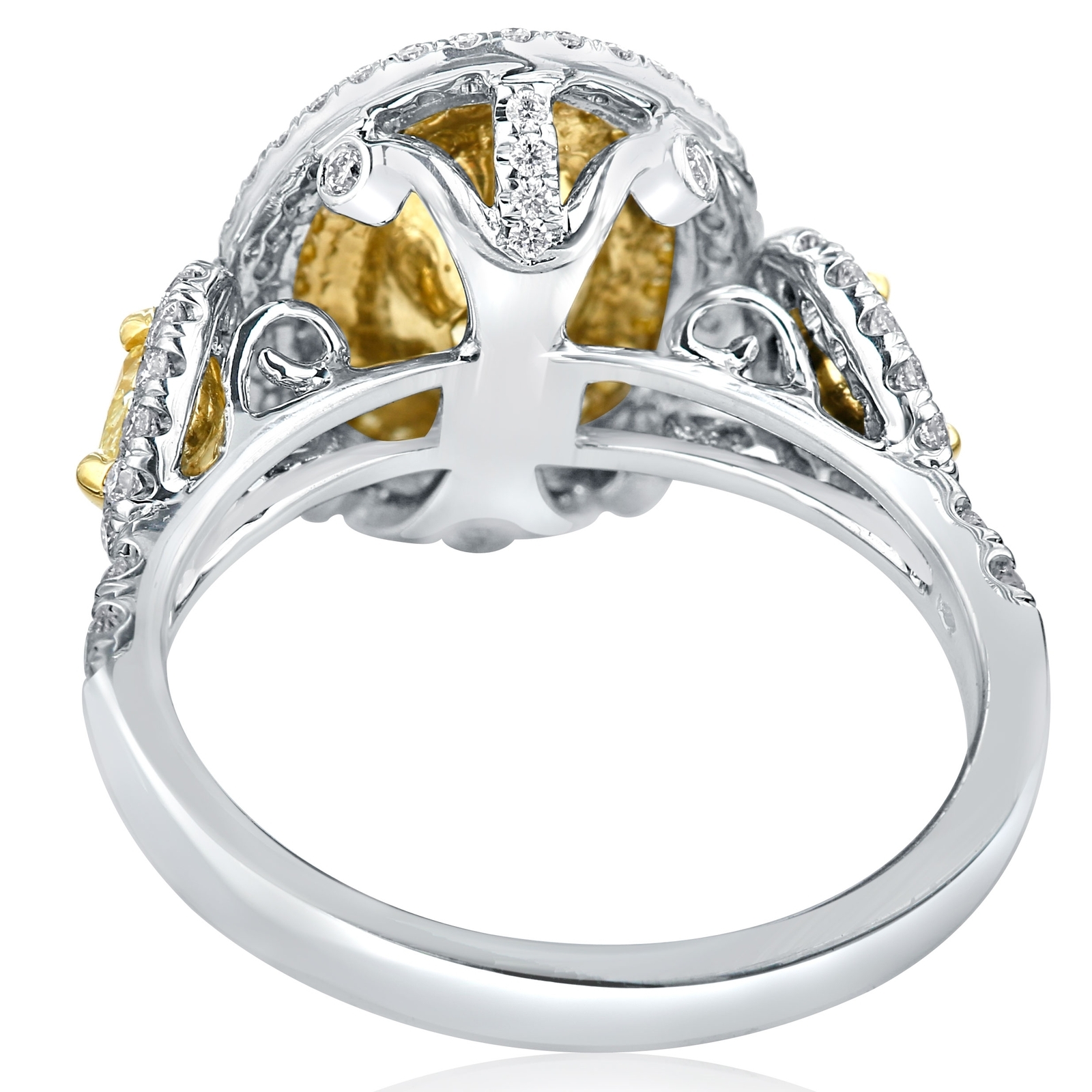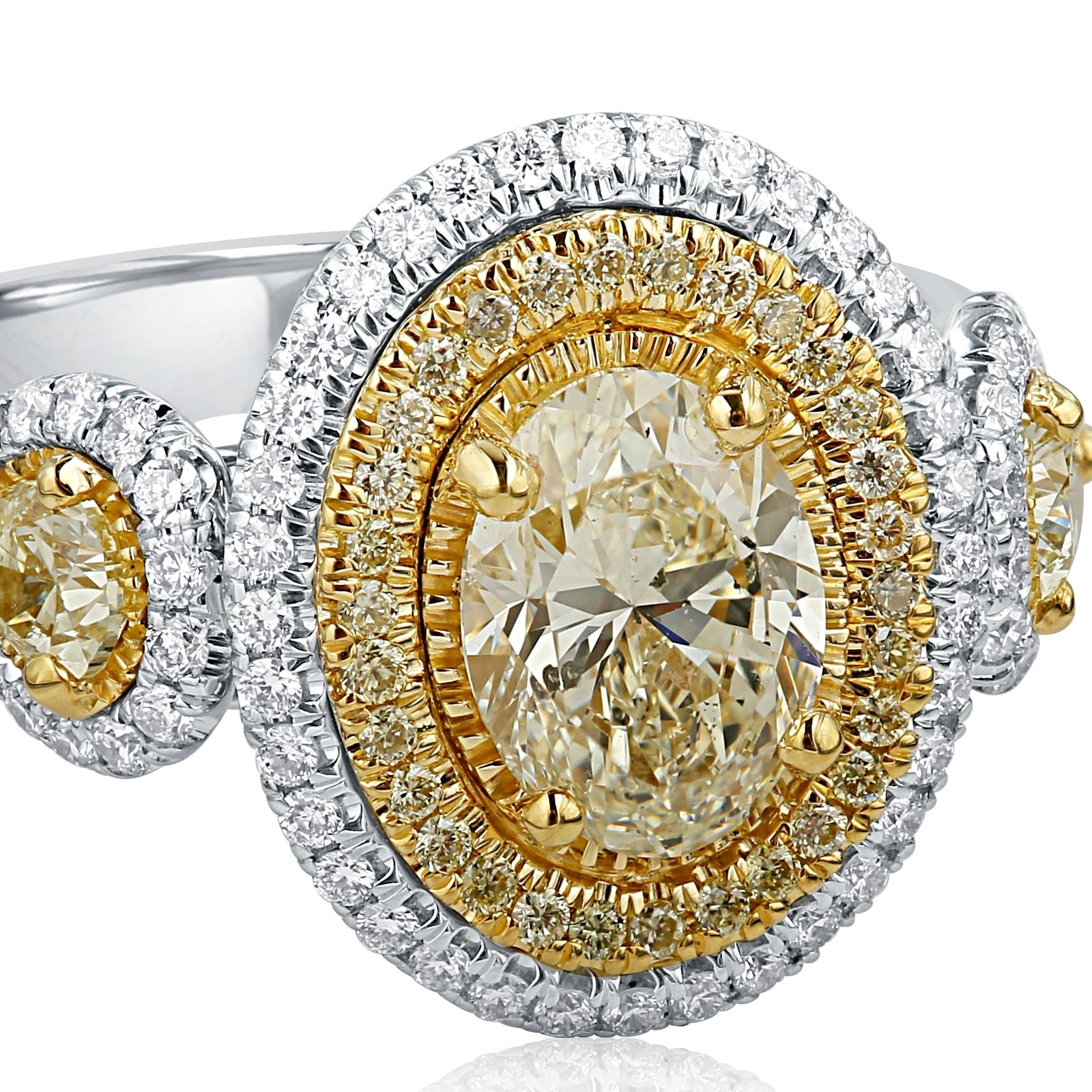 2.03 Ct GIA Certified Oval Faint Yellow Diamond Engagement Ring 18k White Gold