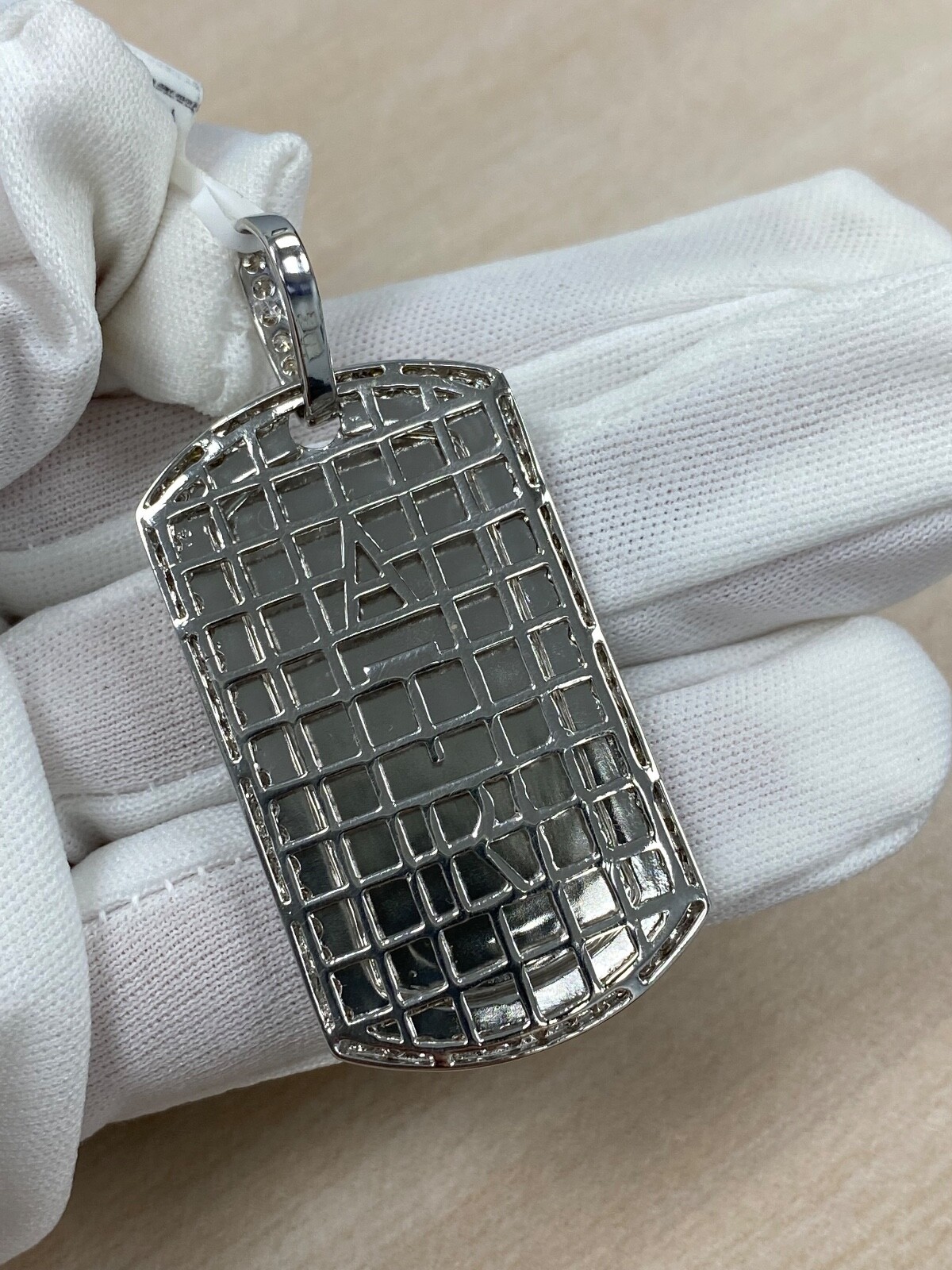 1.90 Karat Herren Diamant Hund Tag Halskette Massiv 14k Weiß Gold Spiegel Finish
