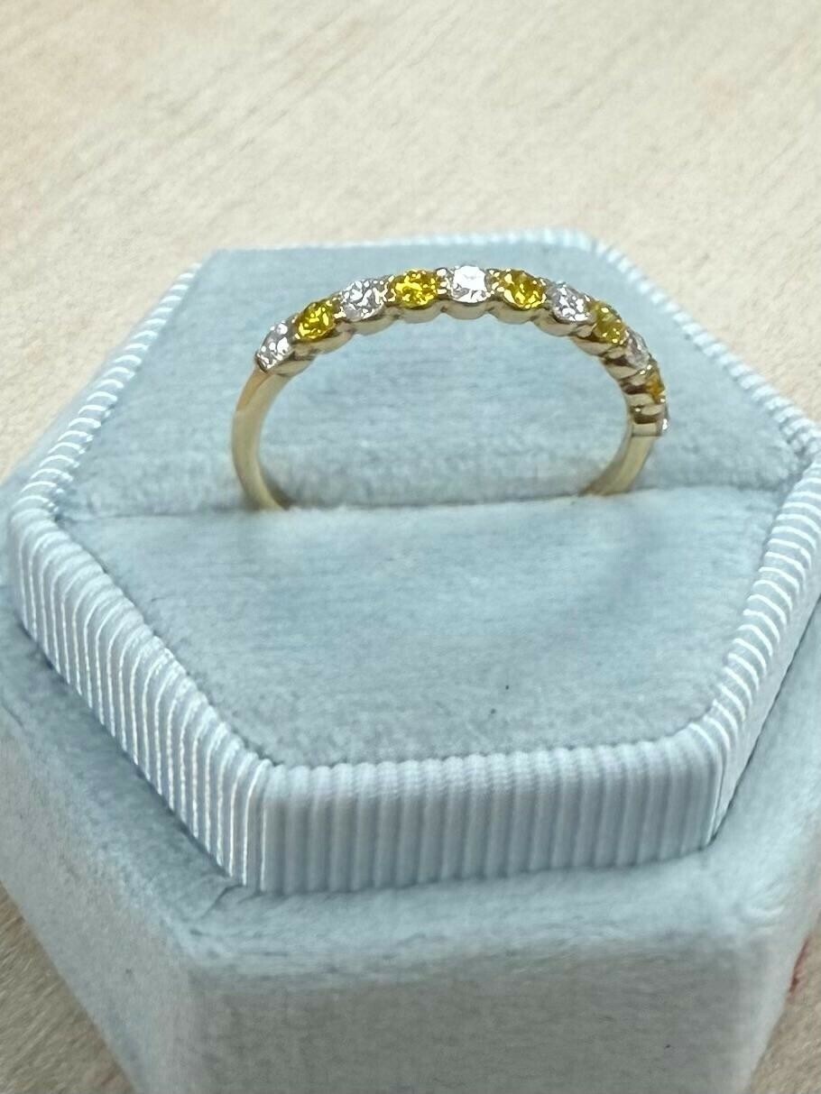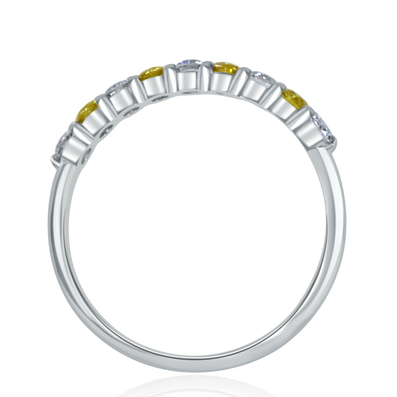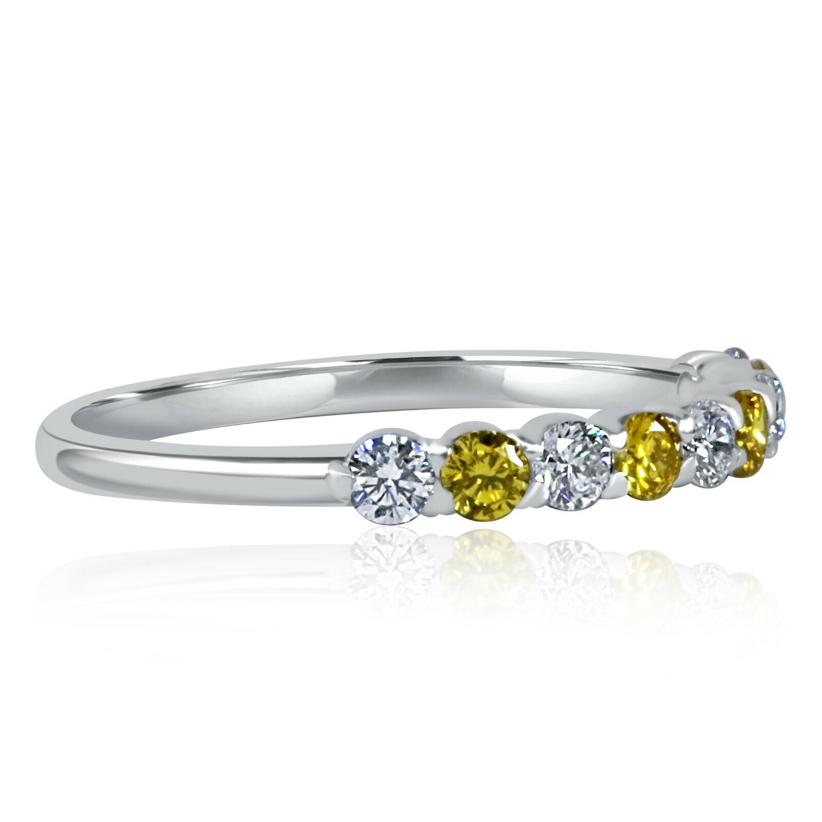 Dieses atemberaubende Hochzeitsband mit 0,50 Karat bietet ein abwechselndes Design, das nahtlos die Brillanz des runden brillanten, geschnittenen Labors mit farblosen Diamanten mit dem Anziehungskraft des gelben Farblabors mit Diamanten kombiniert, die alle elegant in lustiger 14K -Gelbgold auftreten. Feiern Sie Ihre Vereinigung mit dieser bezaubernden Ehering, die so einzigartig und außergewohnlich ist wie Ihre Liebesgeschichte!