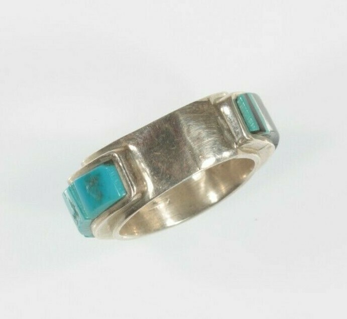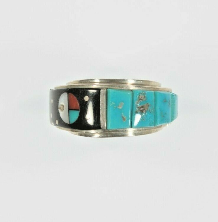 Exquisite Harold Smith Zuni Inlay Sterling Silver Band Ring SZ: 5.50