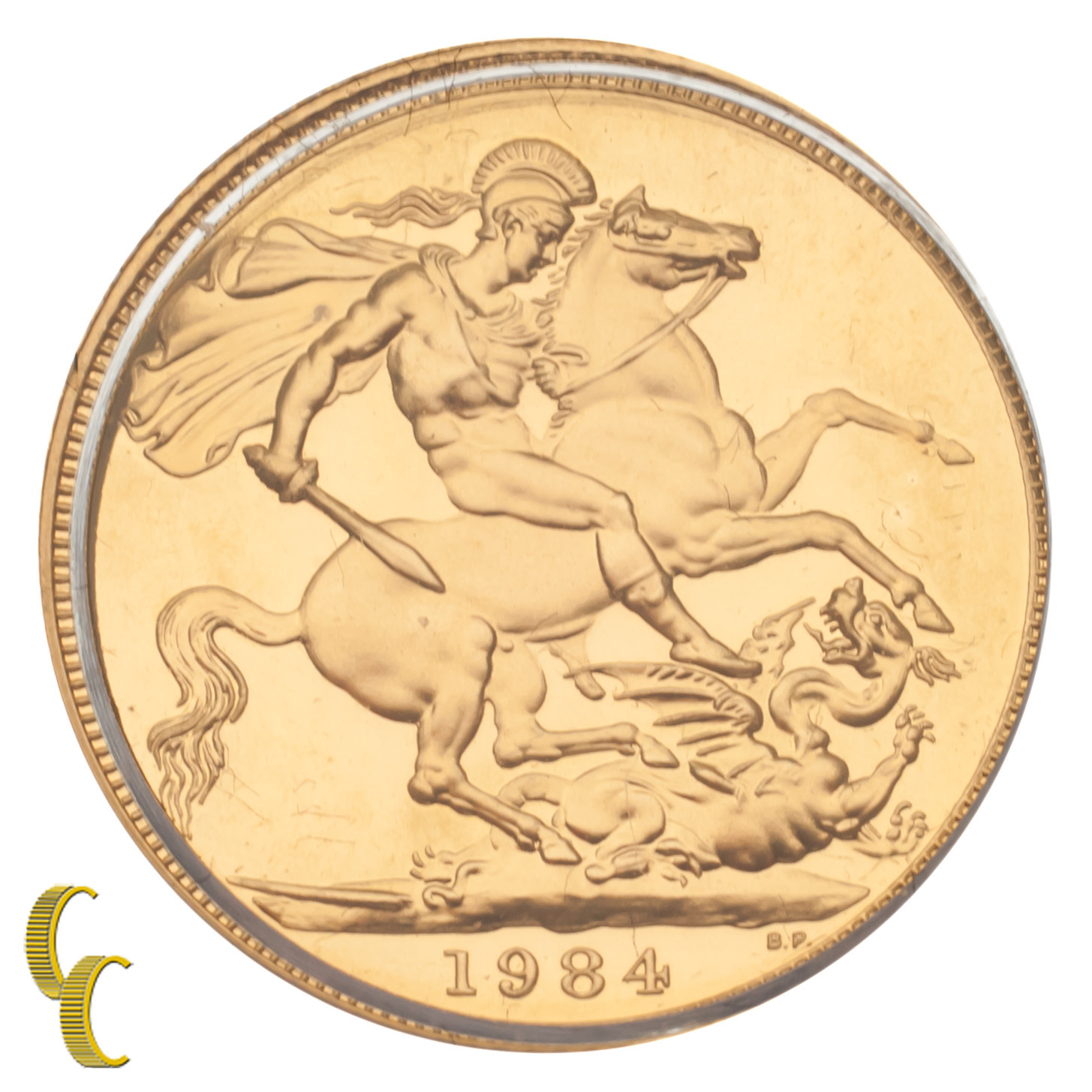 In 1984 the Royal Mint is issuing three United Kingdom gold proof coins, with maximum minting limits of 22,500 each for the half-sovereign and sovereign, and 8,000 of the five pound denomination. A number have been reserved for issue as a three-coin gold collection. Your continuing satisfaction is very important to us. We offer a 30 day money back return policy. If you are unhappy with your purchase for any reason, please notify us so that we can begin the returns process. All items must be returned in the same condition that it was received. Whether you?re looking to buy items or interested in selling gold and silver for cash, sell coins, or a variety of other collectibles, we are here to help. All items for sale are available for viewing at our Southern California showroom. We would li