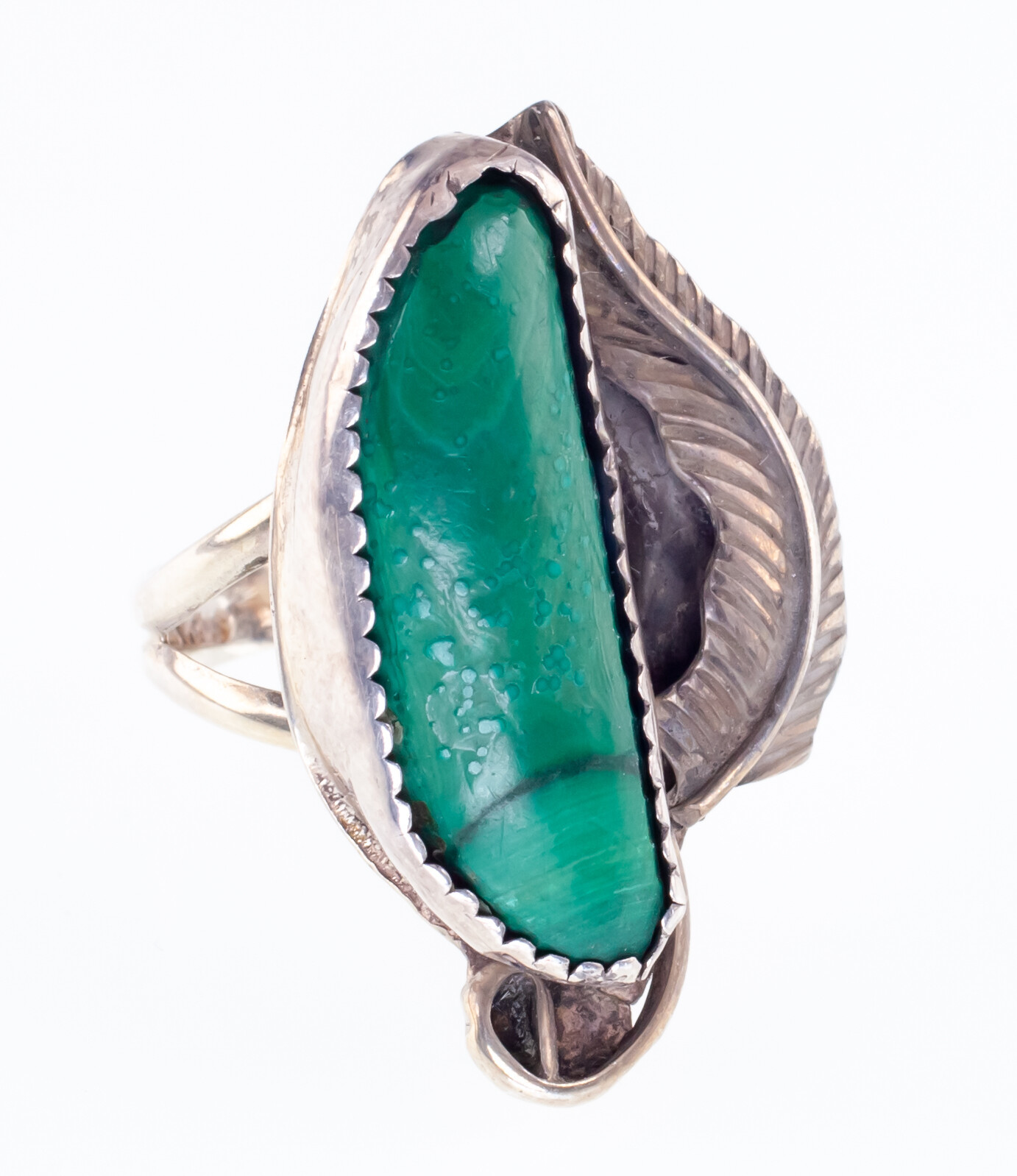Sterling Silver Navajo Sisteks Ring with Malachite Stone Size 7.5