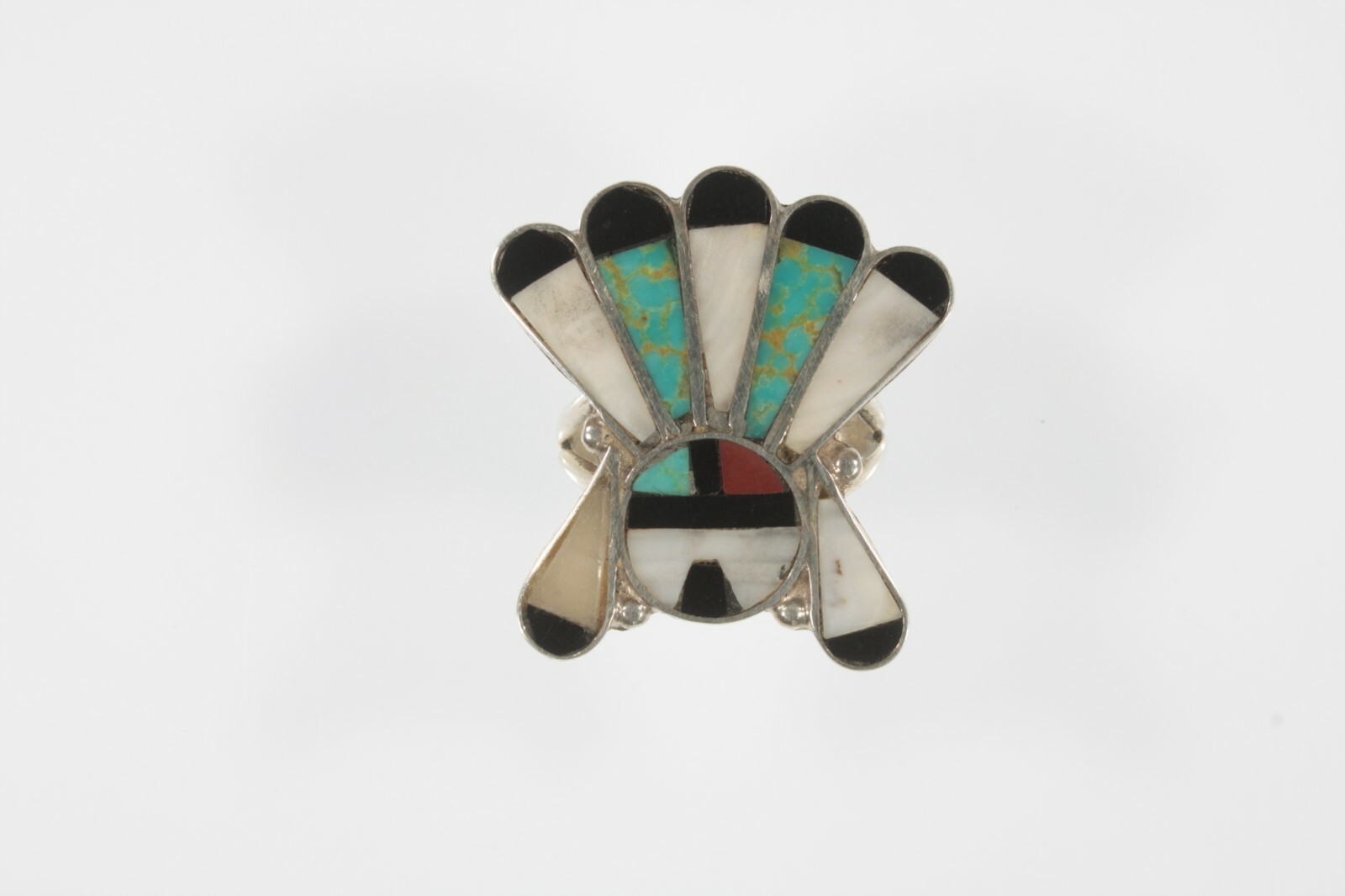 Zuni Sunface Inlay Sterling Silver Ring SZ: and 50 similar items