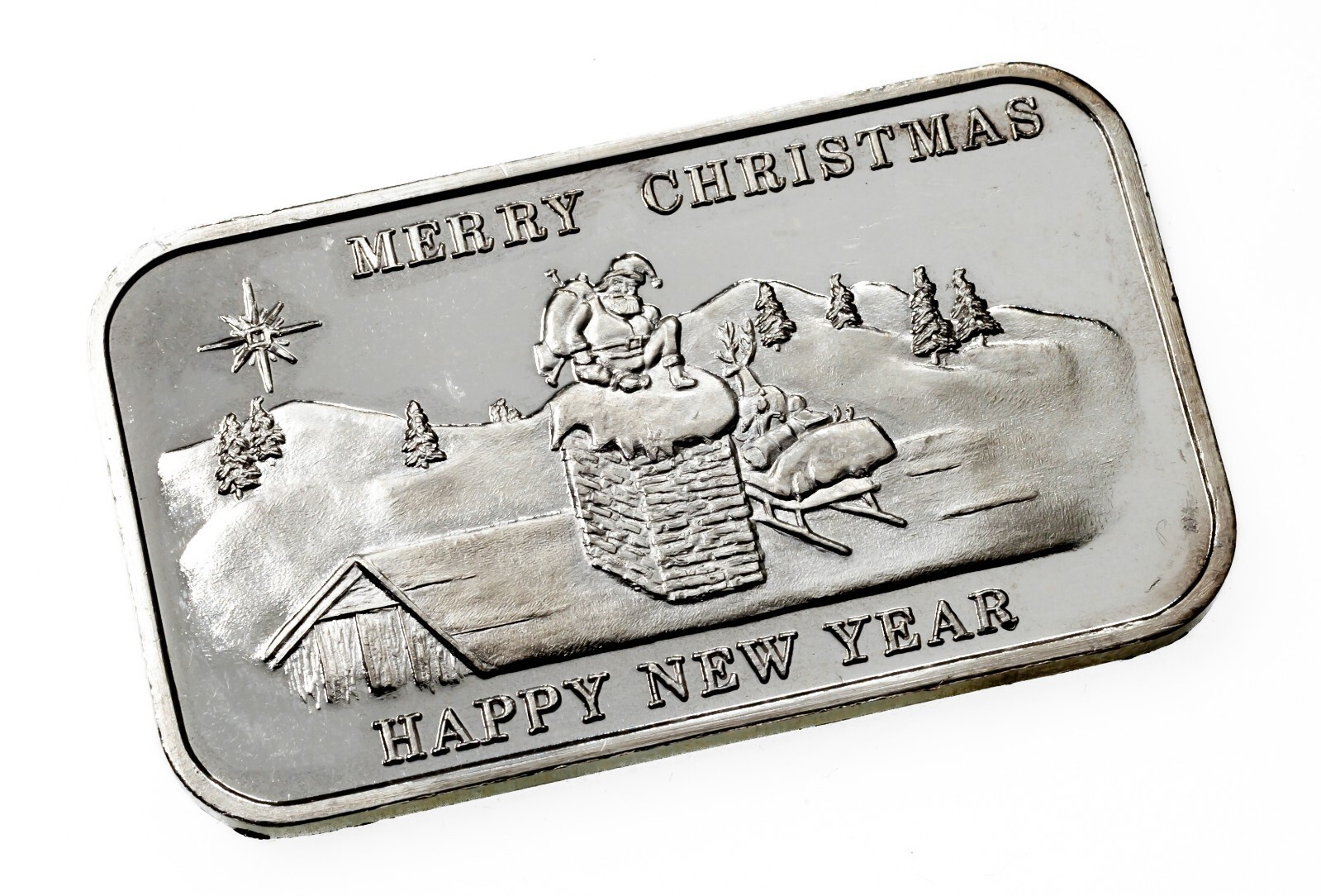 1984 Merry Christmas Happy New Year By TENTEX Mint - 1 oz. Silver Art Bar