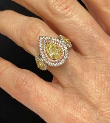 GIA 2.58 Ct Pear Shaped VVS2 Yellow Diamond and 43 similar items