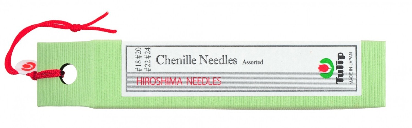 Tulip Chenille Needles Assorted. Sharp needle point and long needle eye are perfect for not only woolen embroidery but also ribbon embroidery. Package Contains 6 Needles: 1 each #18 and #20, and 2 each #22 and #24 Chenille Needles. Features: Large needle eye. Flexible and warp resistant. Runs smoothly through fabric. Nickel-plated Steel Chenille Needles Assorted. Actual needle sizes are: - #18 - 1.24mm x 48.5mm, - #20 - 1.07mm x 45.5mm, - #22 - 0.89mm x 40.0mm, - #24 - 0.76mm x 37.0mm. Manufacturer Part Number: THN-088E. CHK-THN-088E