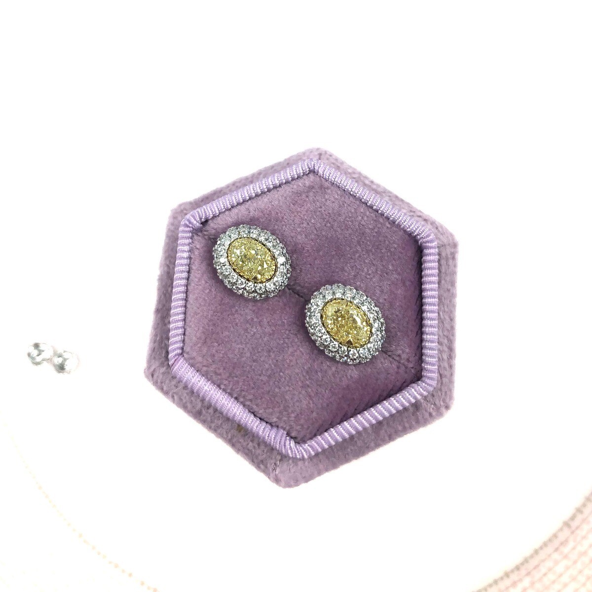1.85 CT Oval Doble Halo Natural Elegante Diamante Amarillo Dormilonas 14k Oro
