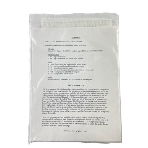 Kit includes instructions, charts and canvas only. Thread and beads are required see instructions for type of floss and colors.