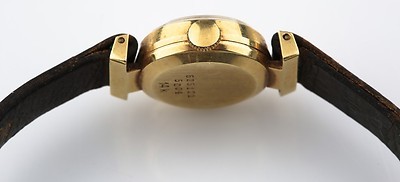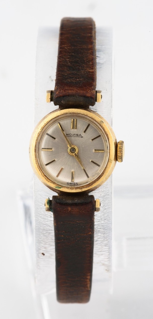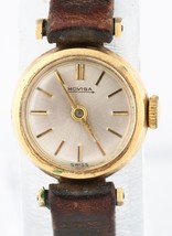 Vintage 14k Yellow Gold Women's Moviga Hand-Winding Watch w/ Brown Leather Band
