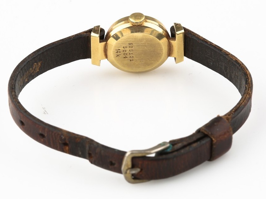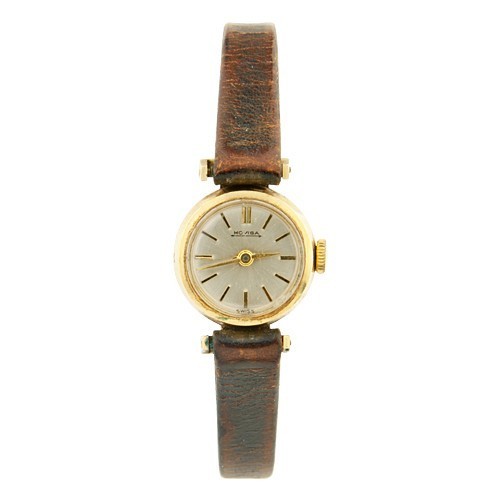 Moviga Vintage 14k Yellow Gold Women's Hand-Winding Watch w/ Brown Leather Band