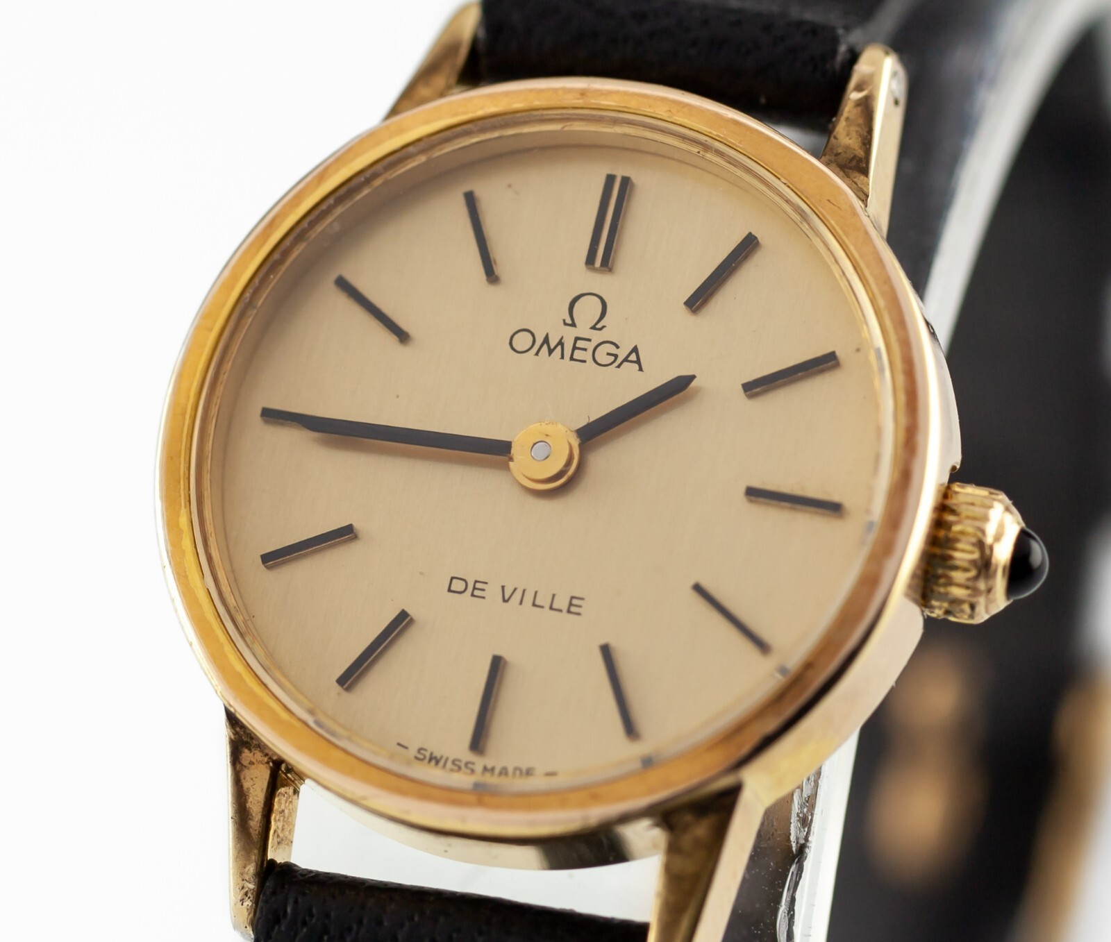 Omega Women's Gold-Plated Deville Hand-Winding Watch w/ Leather Band