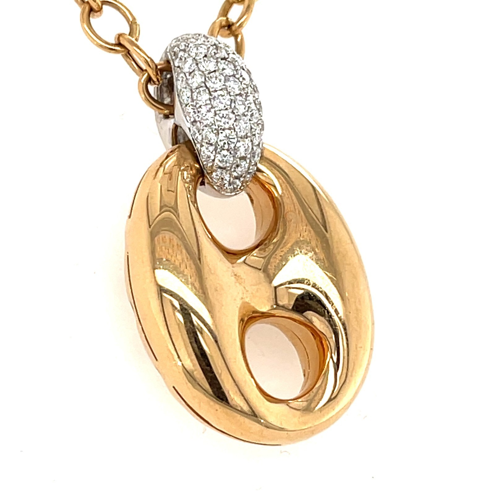 Beautiful In the Style of Gucci Marina Puff Link Pendant with a Diamond Accented Bail in 18k Rose and White Gold