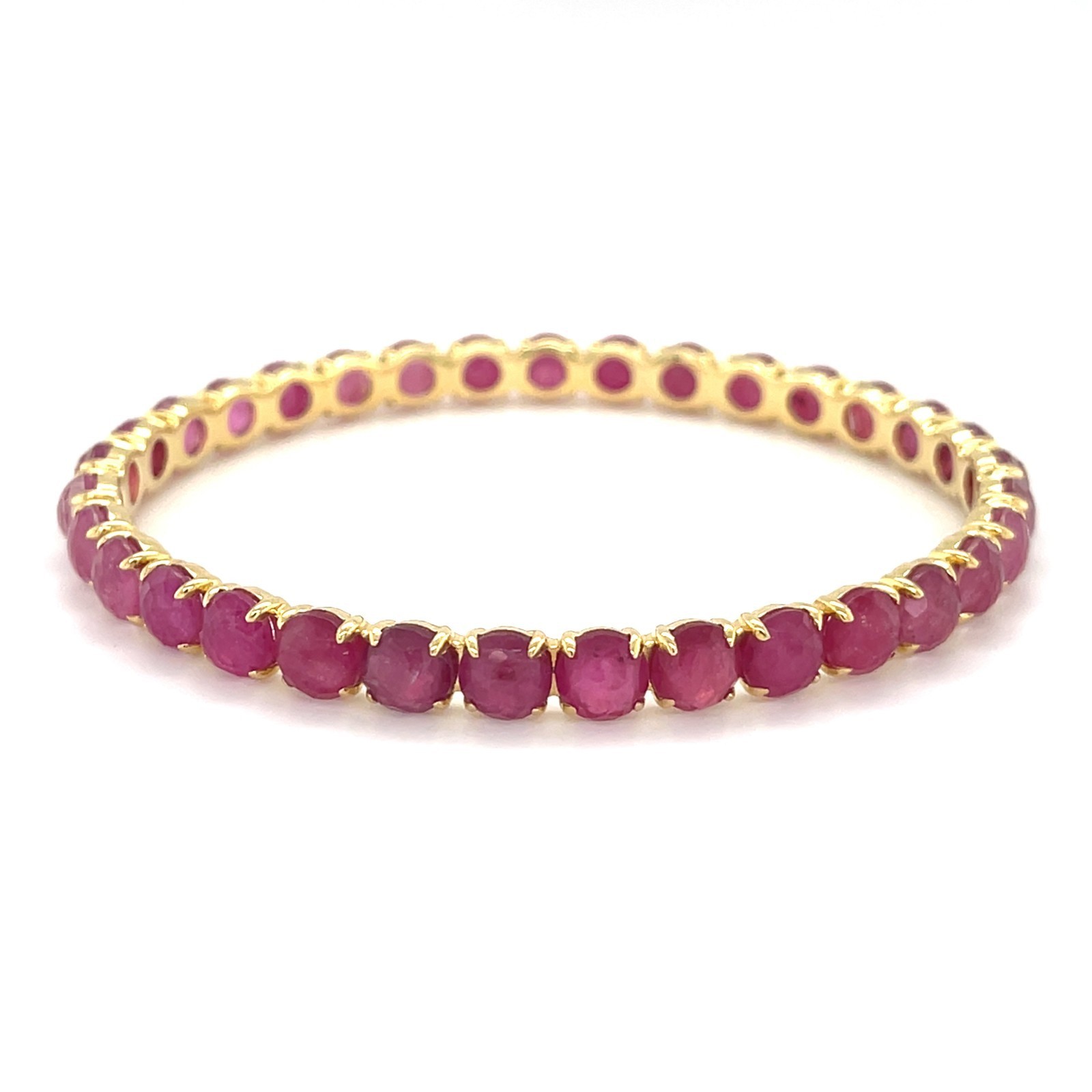 Features 33 Round rubies mounted in 18k Yellow Gold