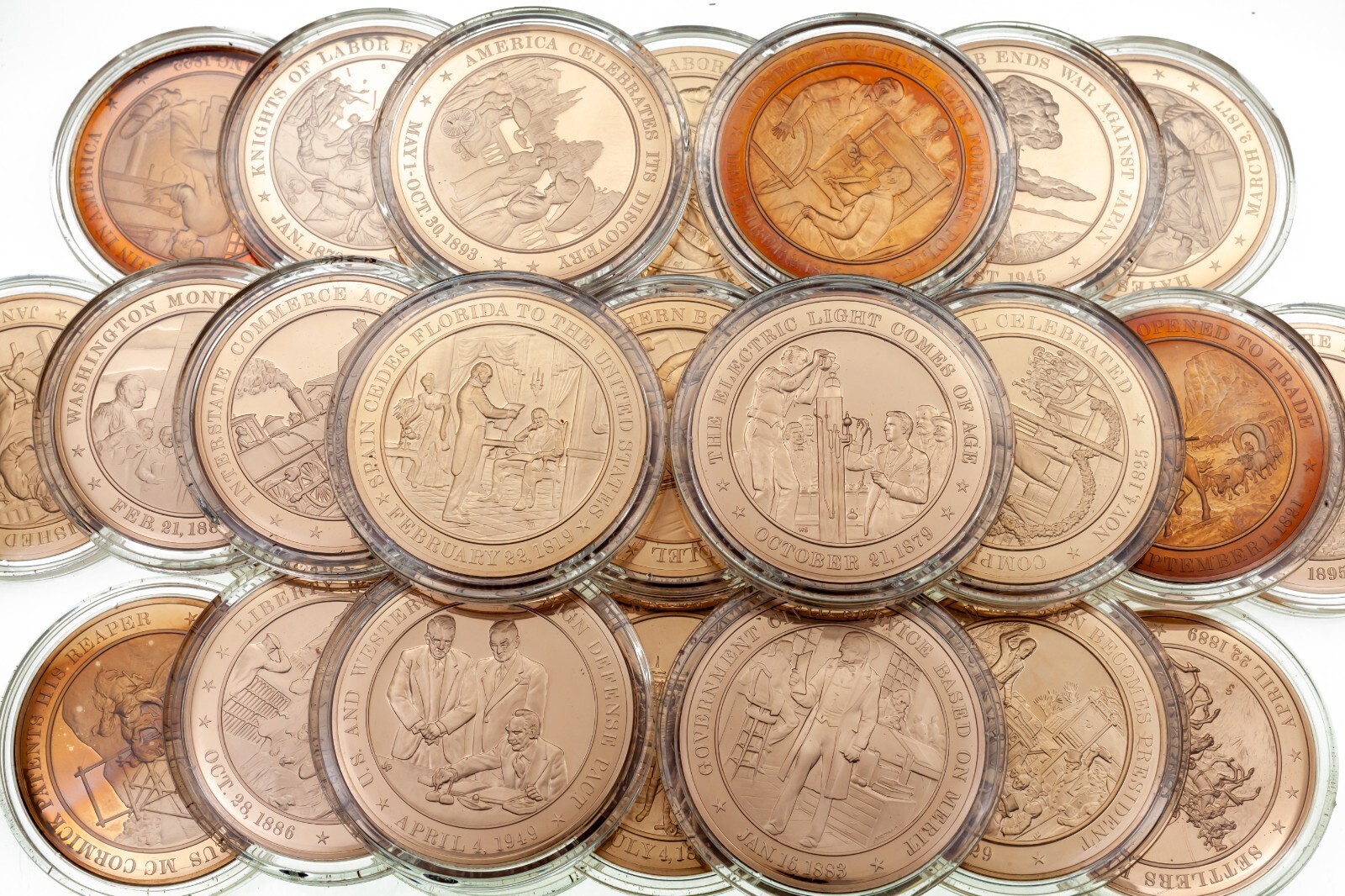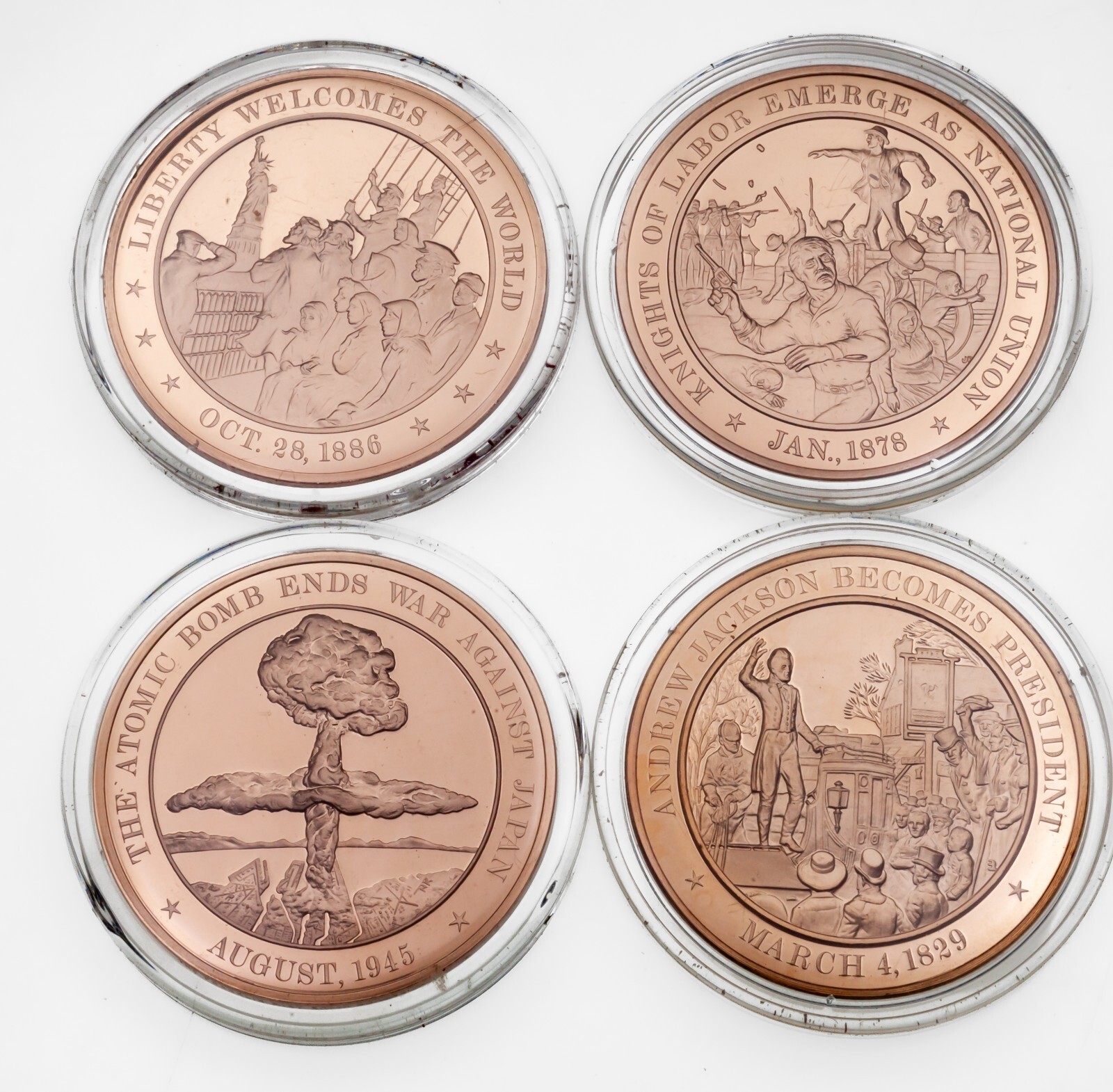 Gorgeous Bronze Medals Issued by the Franklin Mint Highlighting events from each year. This collection features 32 of the 200 Medallions