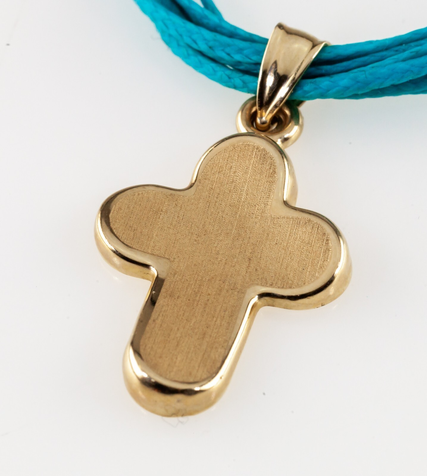 14k Yellow Gold Cross Pendant with 16" Multi-Strand Blue Cord