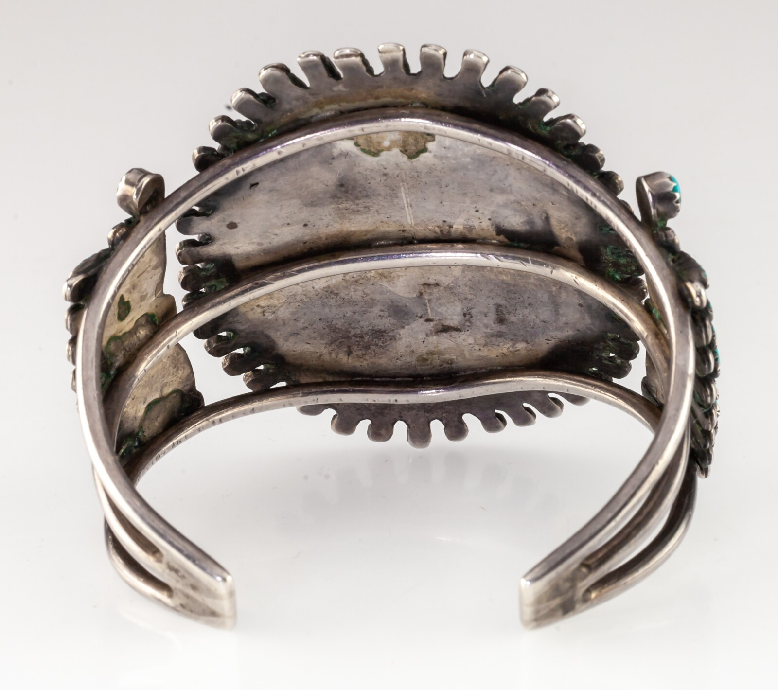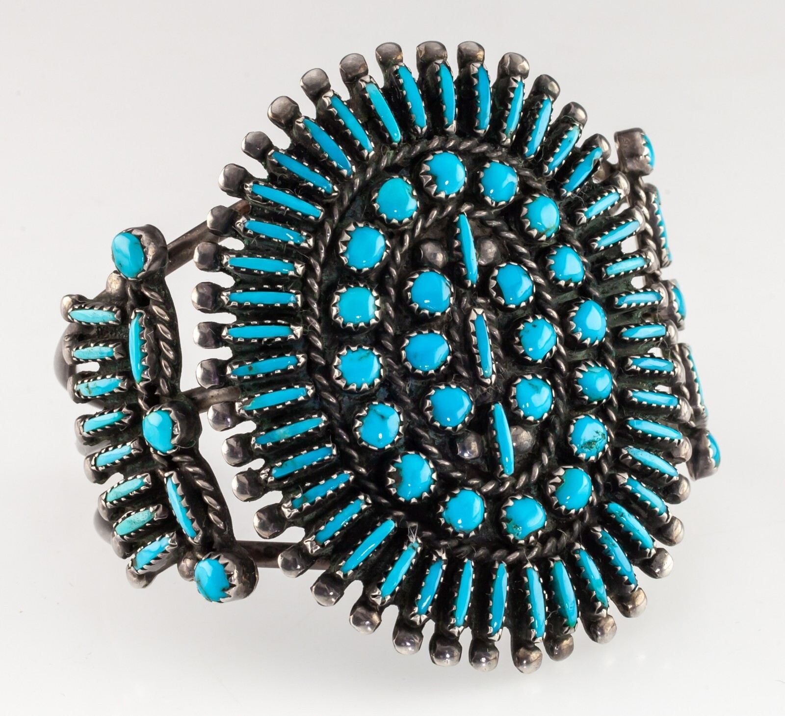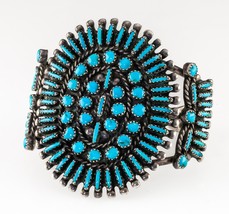 Zuni Turquoise Needlepoint Cuff Bracelet in Sterling Silver 62 mm Wide
