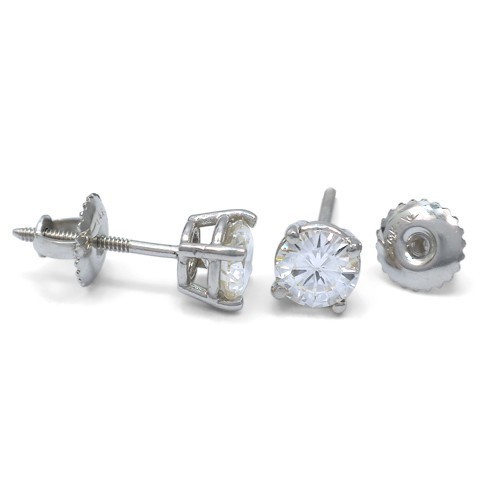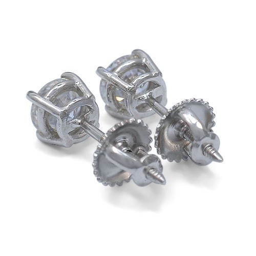14k White Gold Diamond Solitaire Earrings w/ Screw Backs TDW = 1.08 Ct