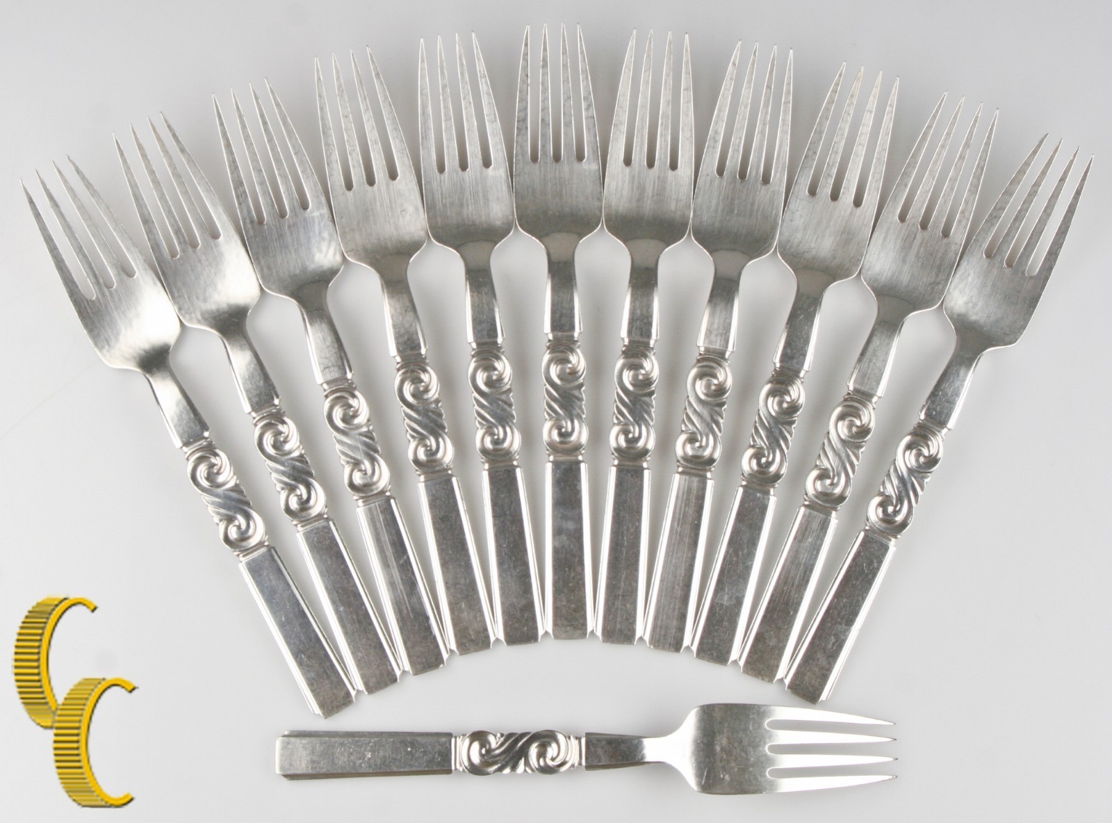 Scroll By Georg Jensen (Denmark) 27 pcs of Sterling Silver Flatware