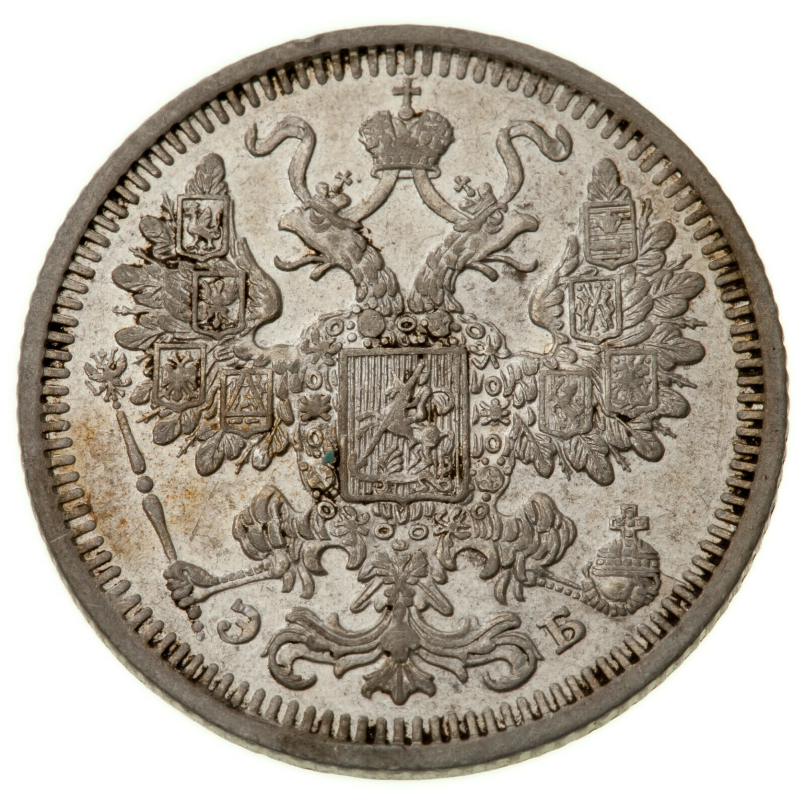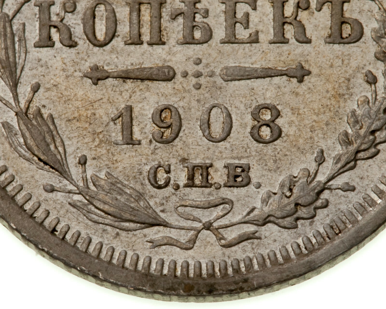 1908 Russia 15 Kopek Silver Coin In XF, Y# 21a.2