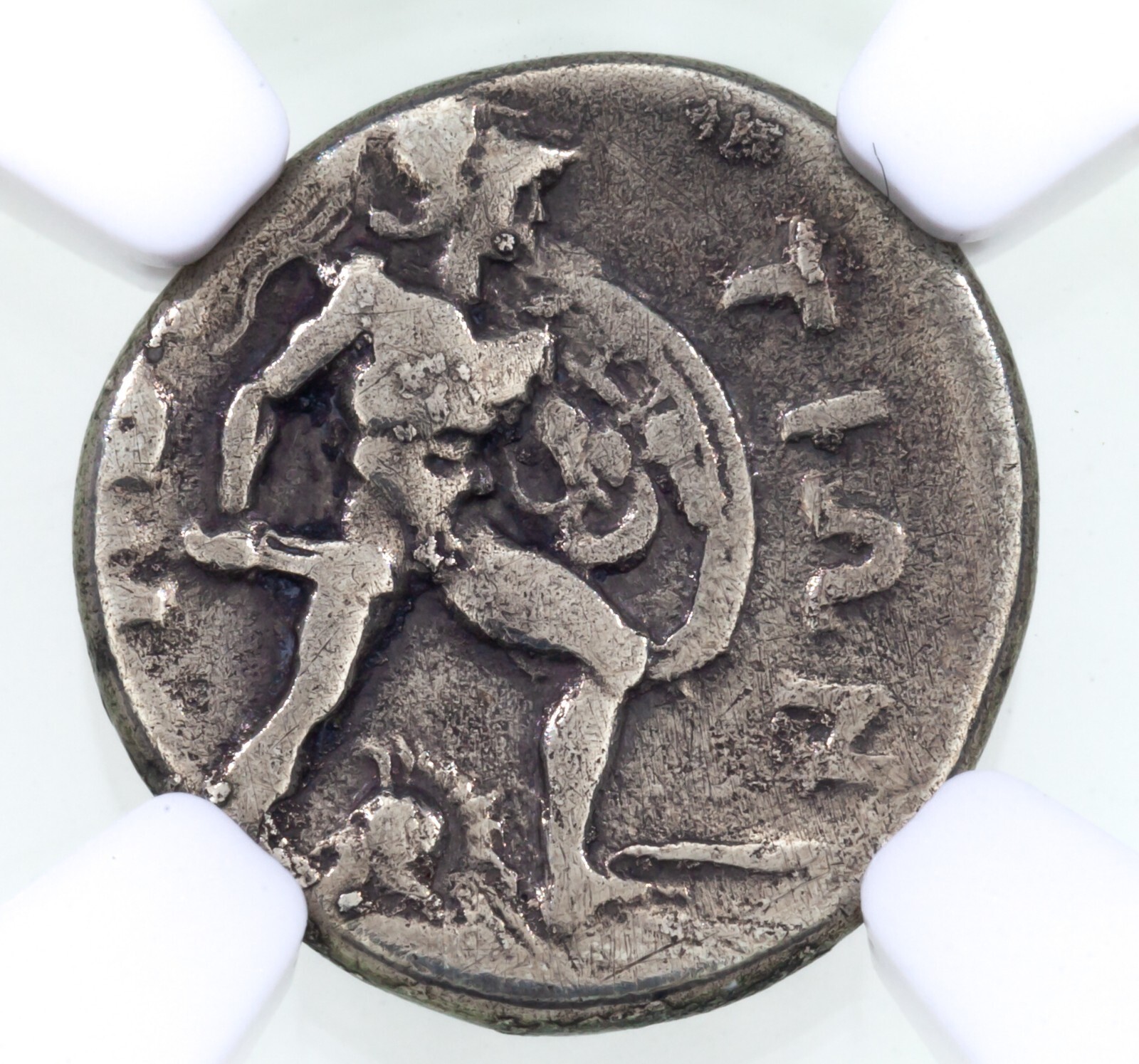 reverse: Ajax of Locris facing to the right holding short sword and shield