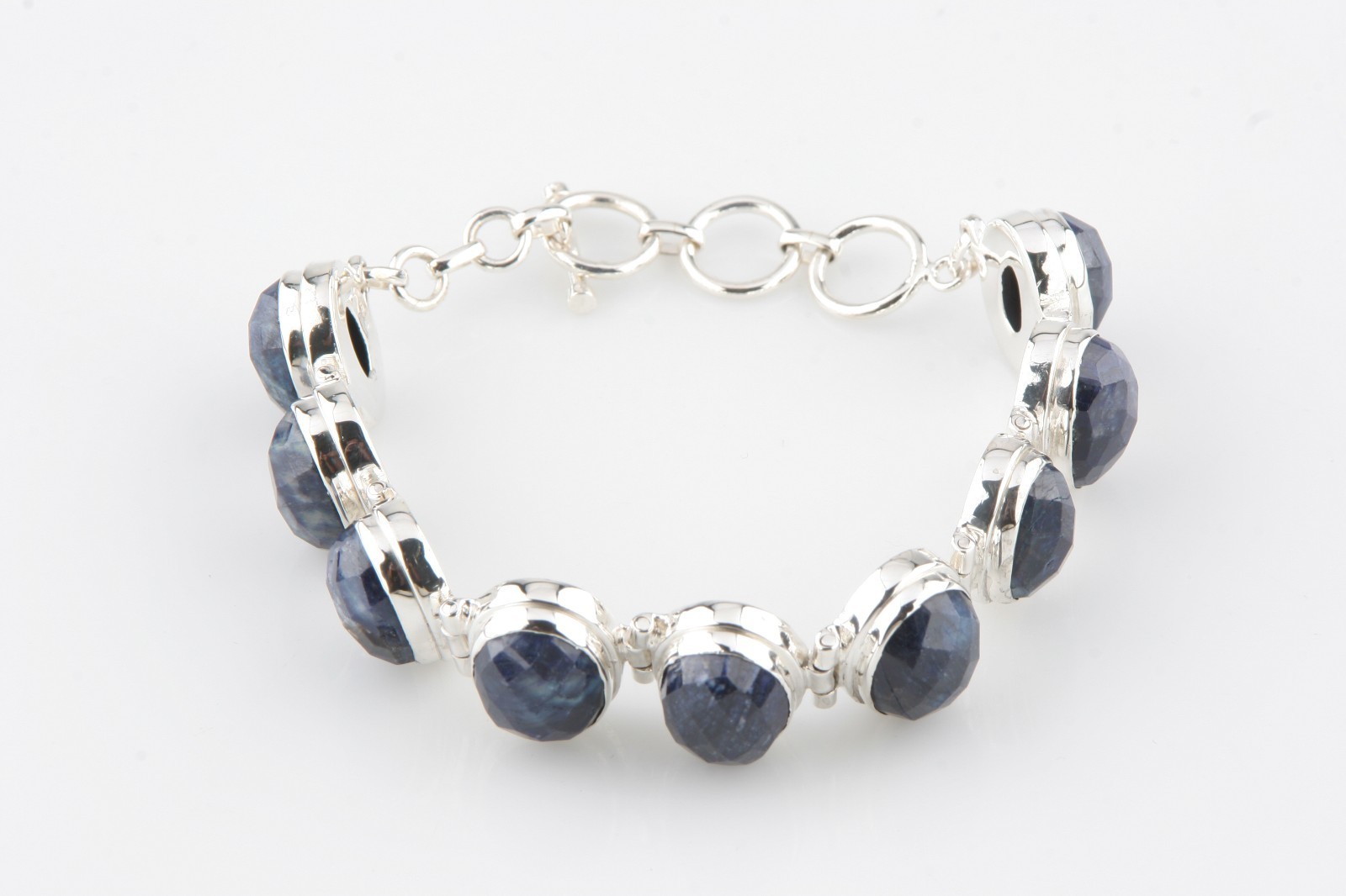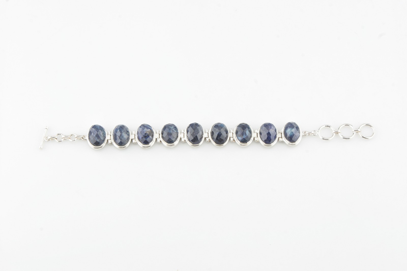 Dazzling Faceted Raw Sapphire Sterling Silver Toggle Bracelet, Size 9