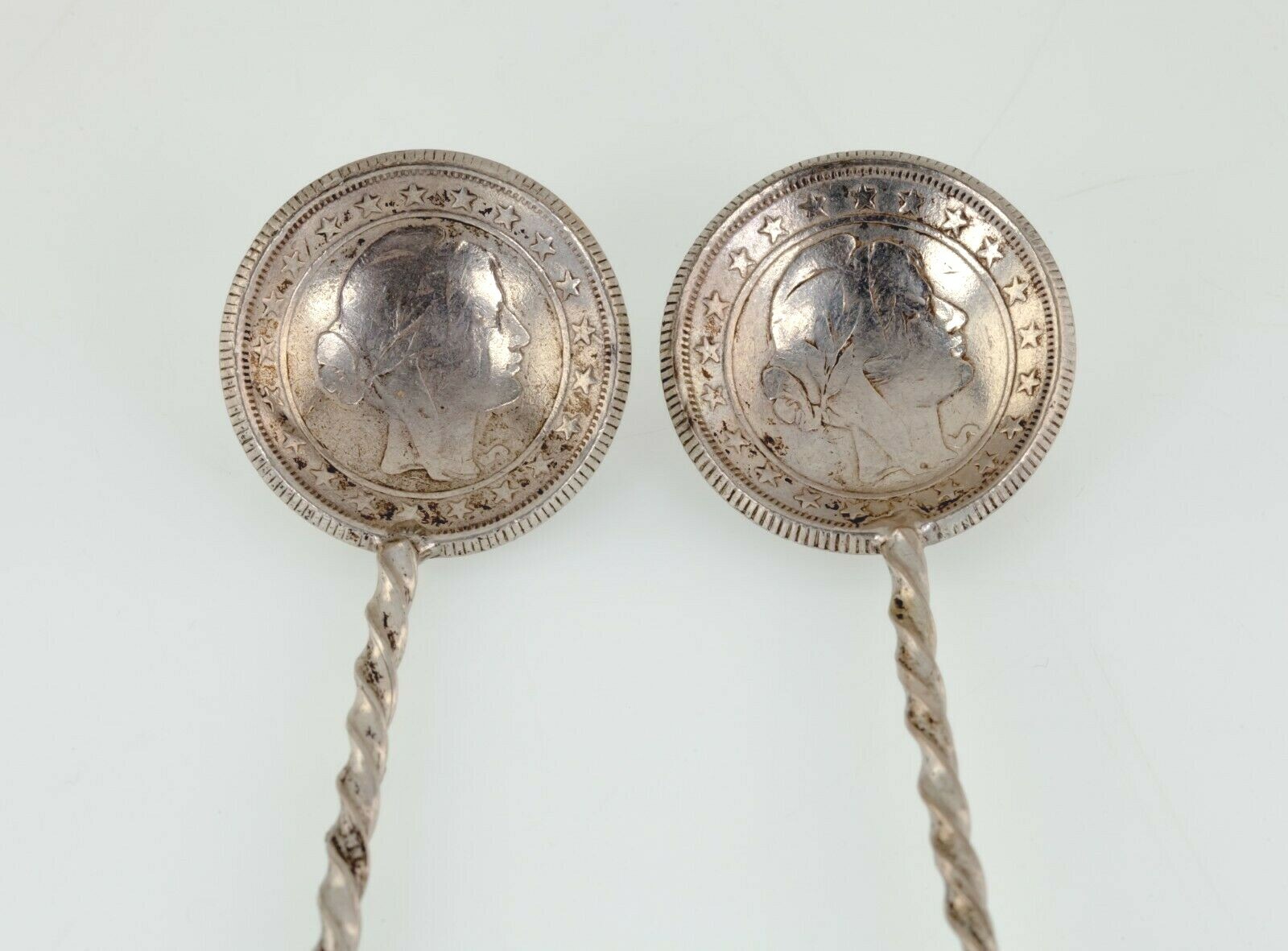Brasilien 2000 Reis Silbermünze Eisteeloffel Set Mit 2 Stück, 8" Lang