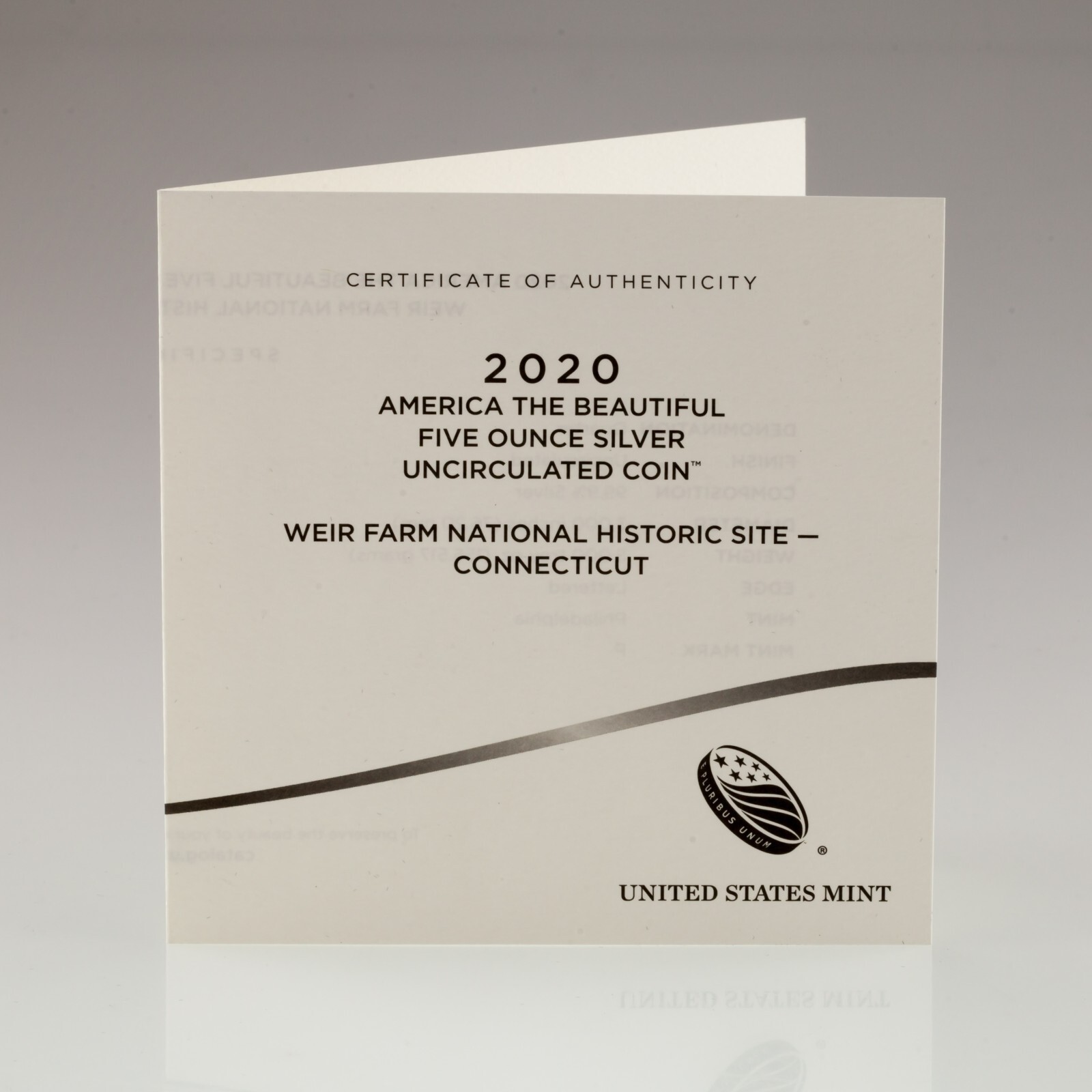 2020-P ATB 5 Oz. Silver Round W/ Box e Coa Weir Farm National Historic Sito CT