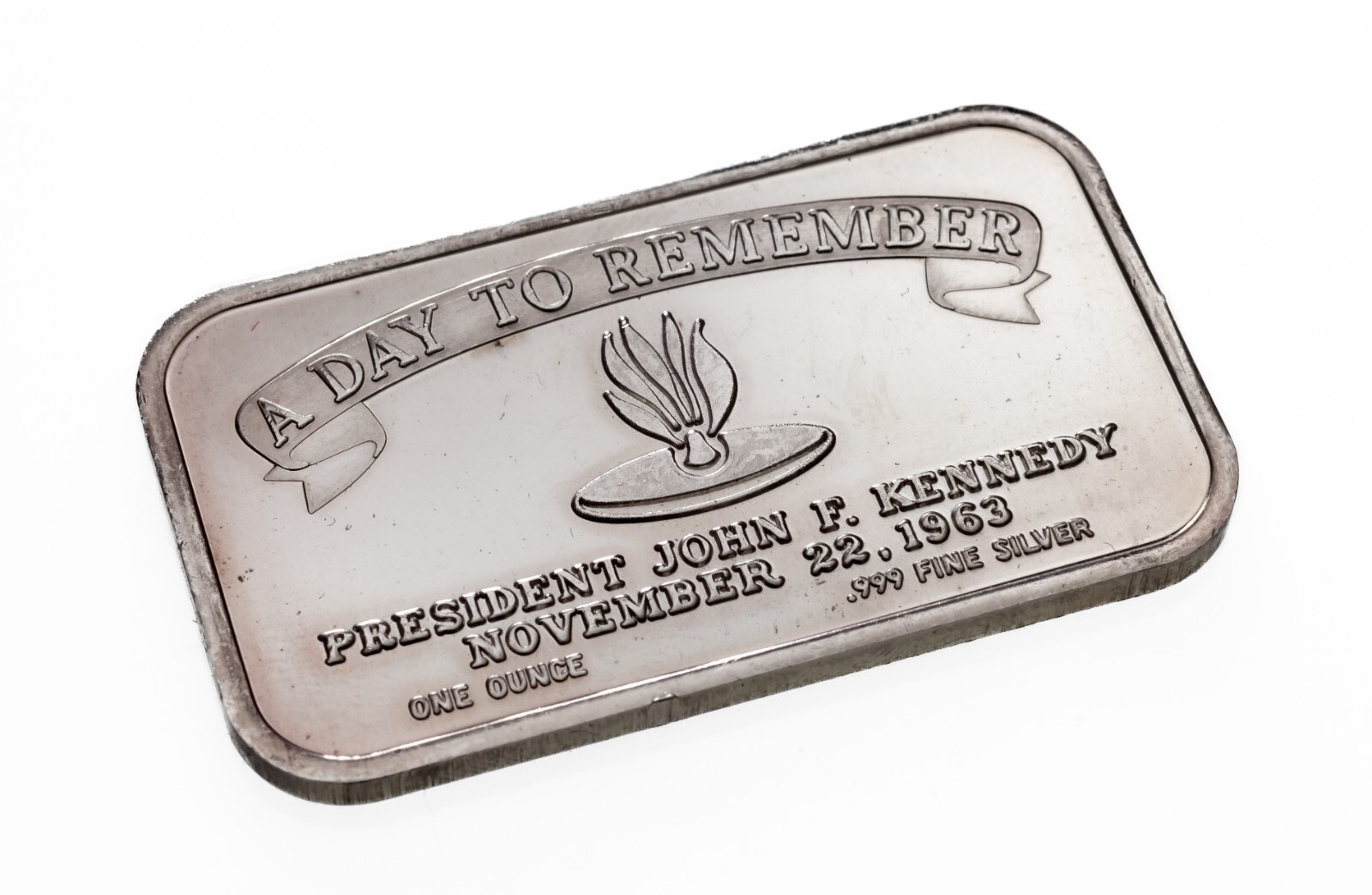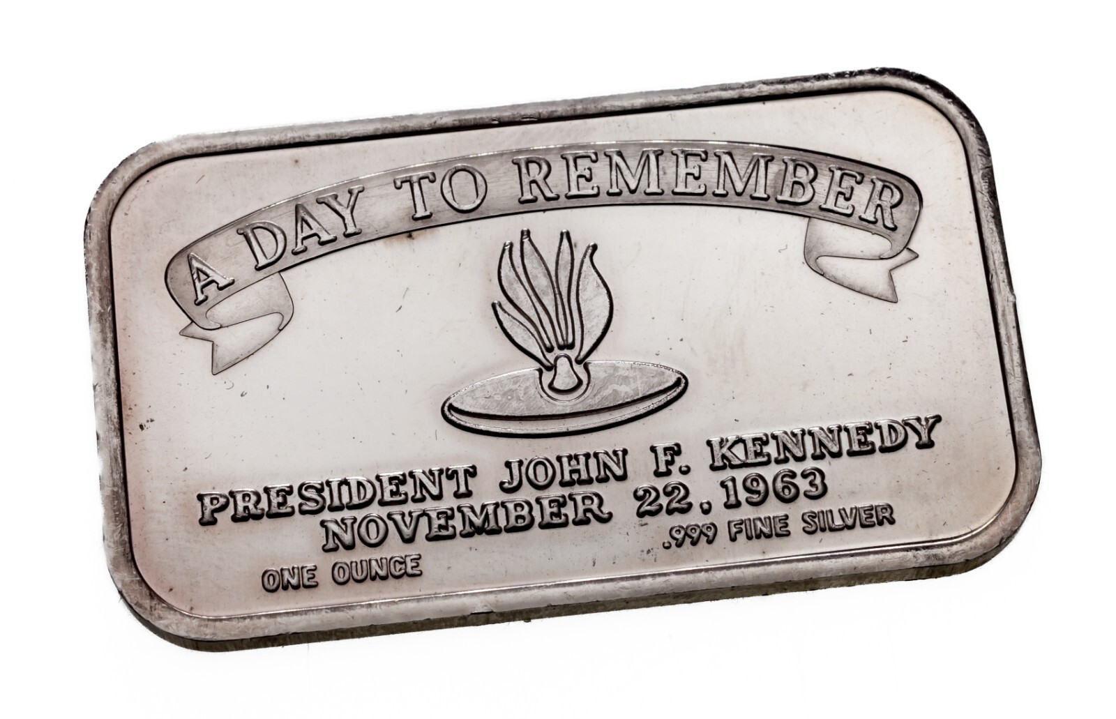 1973 A Day of Remembrance - John F Kennedy di Colonial Mint 1 Oz. Silver Art Bar