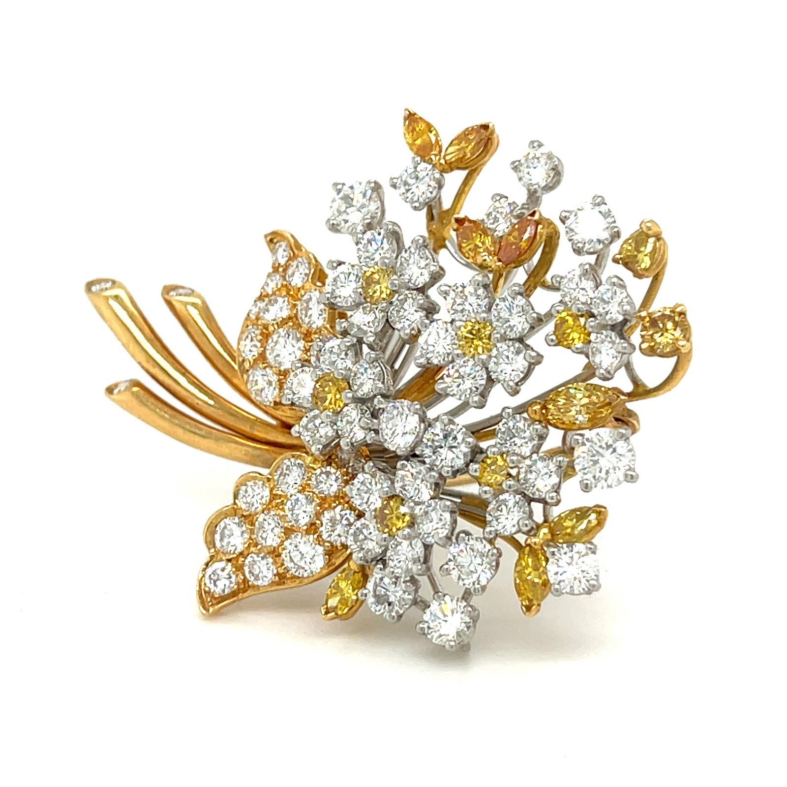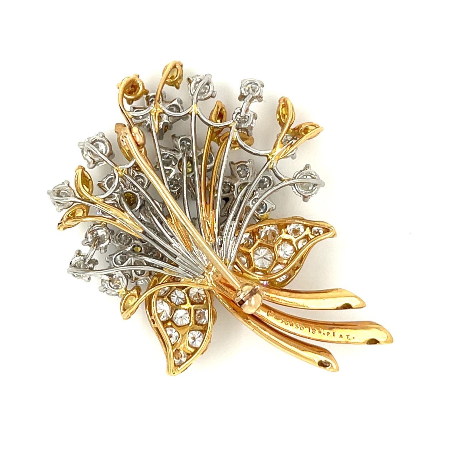 Oscar Heyman Platino E 18k Bianco e Giallo Diamante Margherita Bouquet Spilla