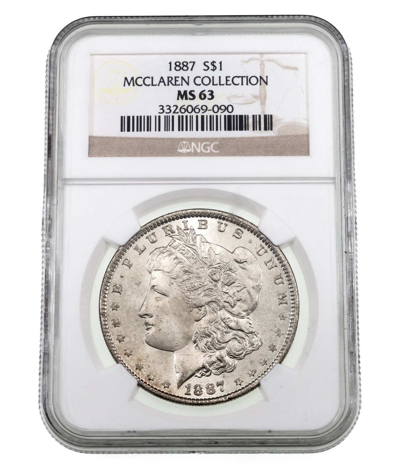 1887 Argento Morgan Dollaro Selezionato Da NGC Come MS-63 Mcclaren Collezione