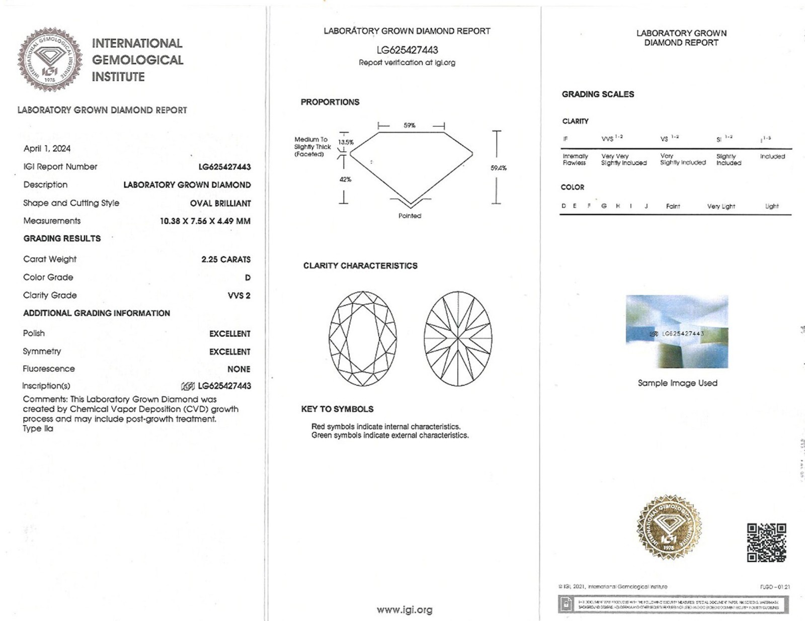 IGI 2.25 Ct D-VVS2 Oval Brilliant Cut Lab and similar items