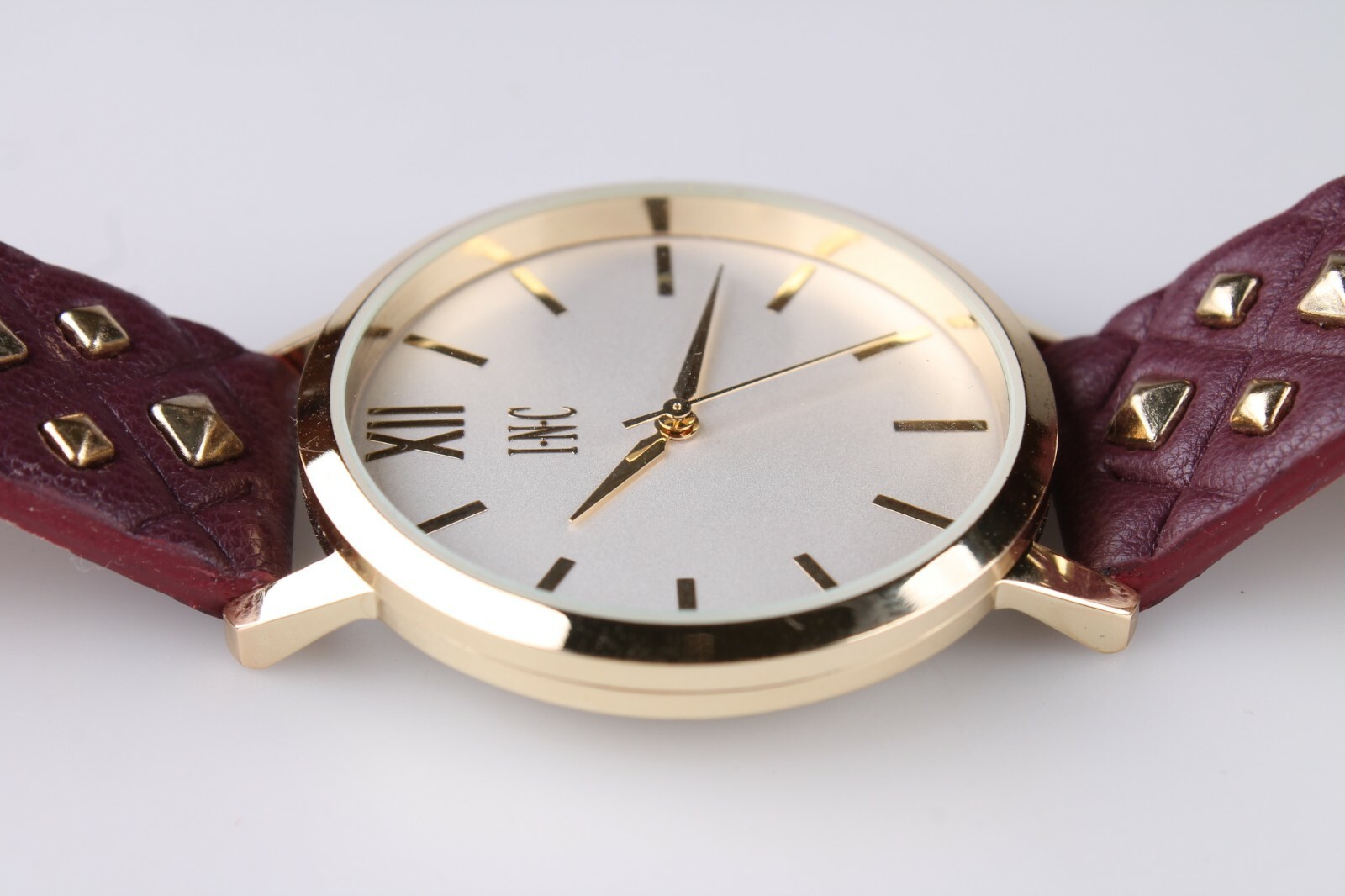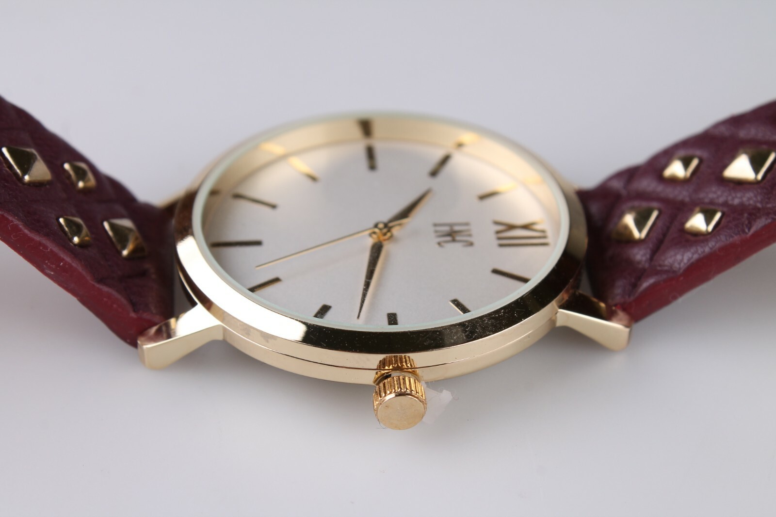 I. N.c. Mujer Color Dorado Relieve Piel Sintética Correa Tachuelas 38mm Reloj +