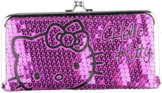 Hello Kitty SLGS Fusia Pink Sequin Frame Coin Credit Card Wallet