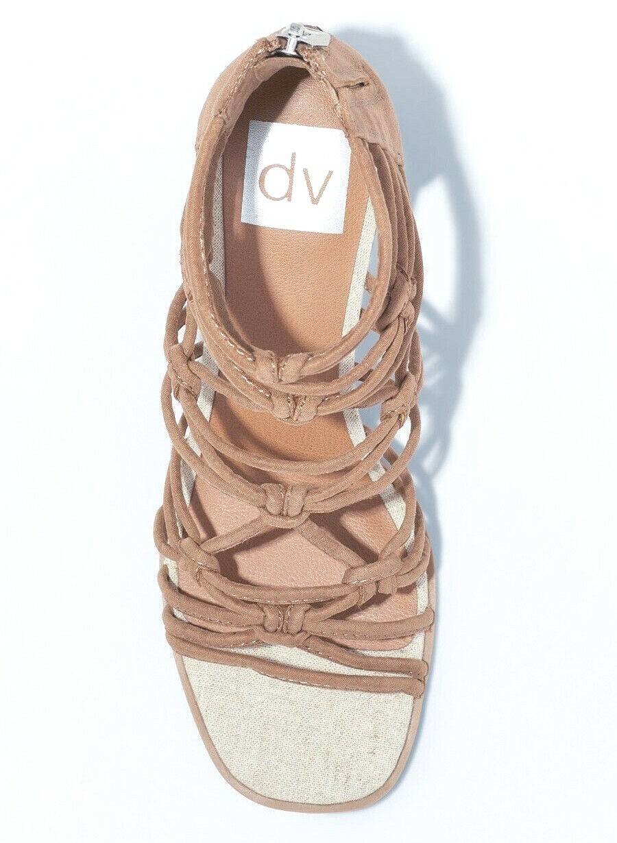 This is for a brand new pair of DV Women's Taupe Faux Suede Adira Strappy Knotted Zippered Back Heeled Sandals