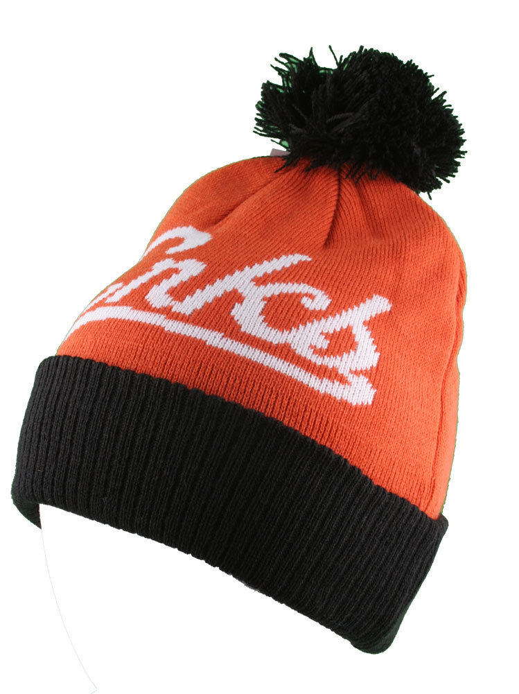 Crooks & Castles Collegiate Orange Black Pom Beanie Winter Hat I1270801 NWT