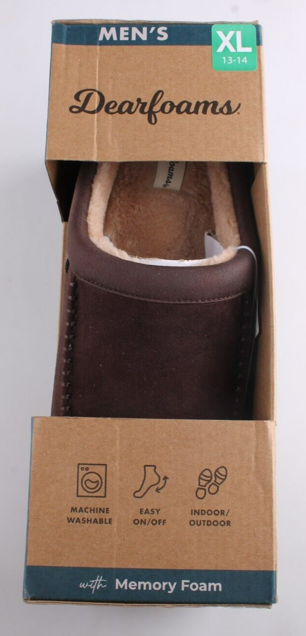 Dearfoams Uomo W/Memoria Schiuma Interni Pantofola Slide Caffè Marrone Nib