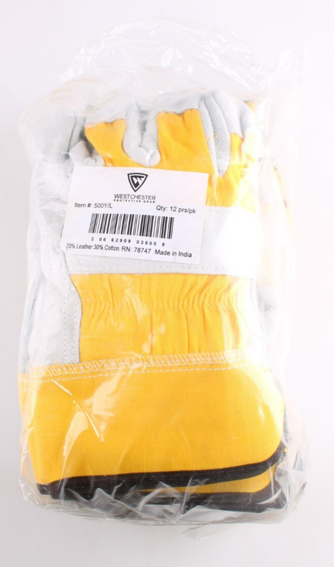 Crafted for durability and comfort, the West Chester 500Y 12 Large Premium Gloves are an essential choice for demanding work environments. 12 Pack of Brand New Gloves - Ships FAST! These gloves feature a split cowhide palm, offering superior grip and resistance to various surfaces. The yellow design ensures a vibrant and practical addition to your safety gear. With a convenient size L, these leather gloves provide ample coverage and dexterity. Whether it's for heavy-duty tasks or everyday wear, these West Chester safety work gloves are designed to meet the demands of any job.