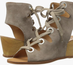Dolce Vita Lei Sandali In Suede Taupe Con Tacco In Legno Donne NIB