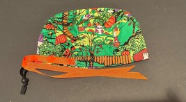 The handmade euro style hat with contrasting ribbon ties is a fun accessory for those in the food industry. Made from 100% cotton in vibrant green and orange colors, this scrub hat features a one-size-fits-all design.