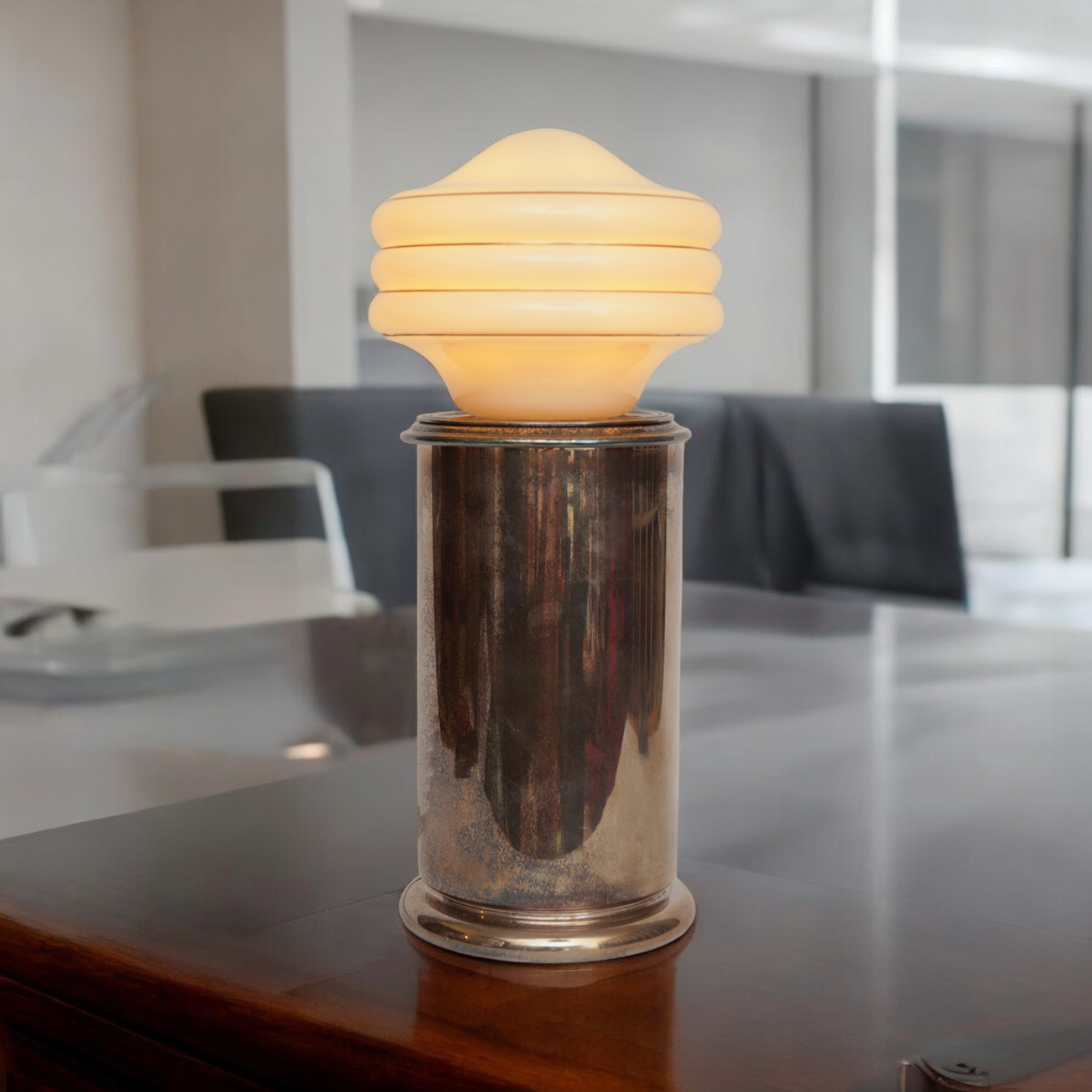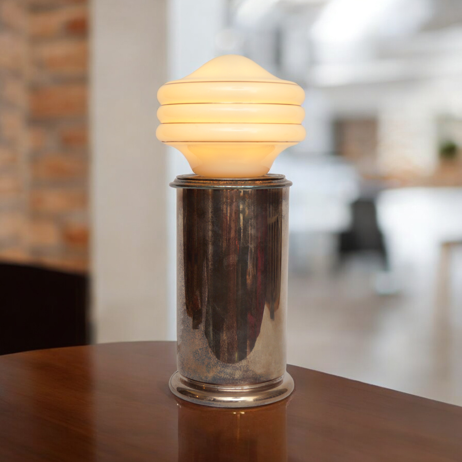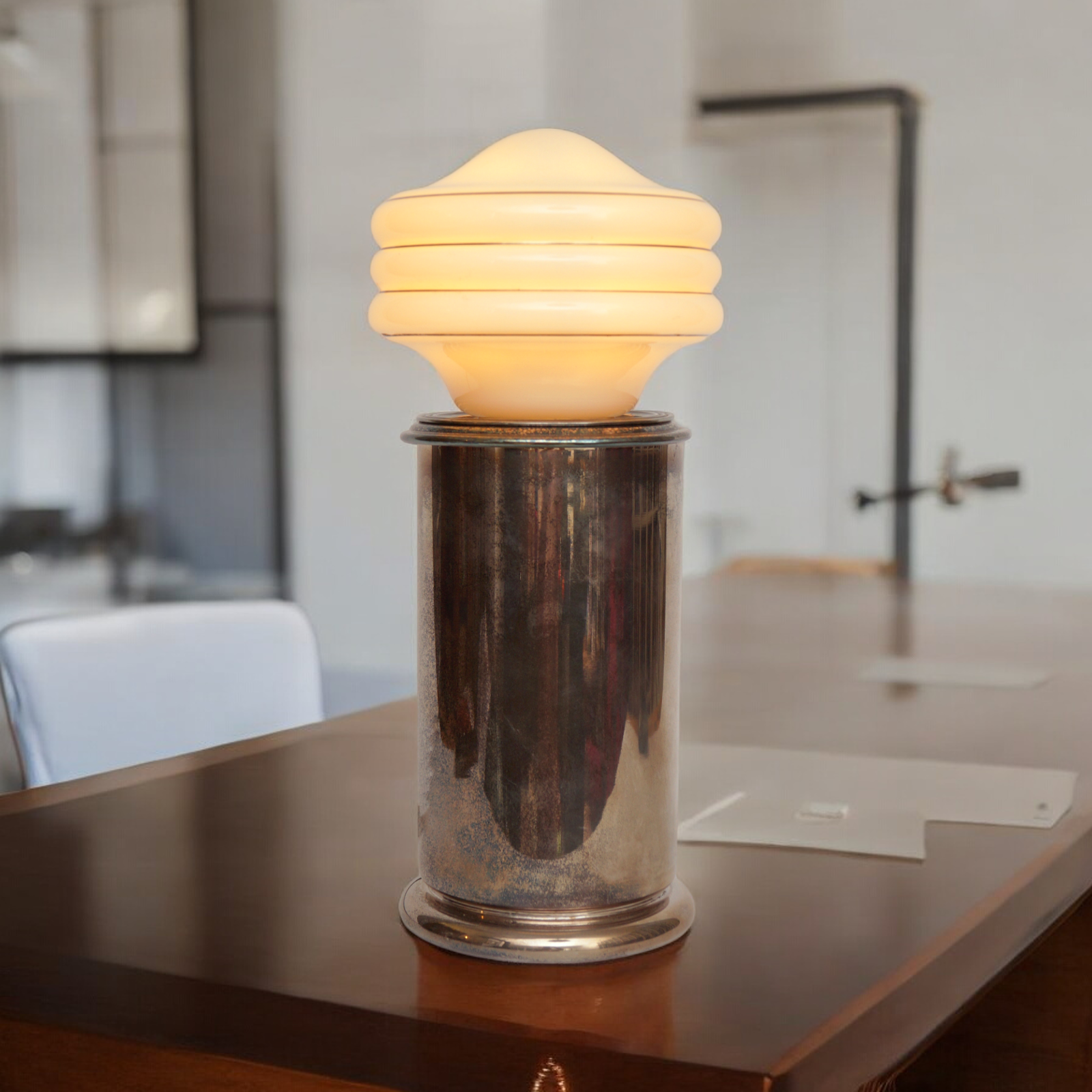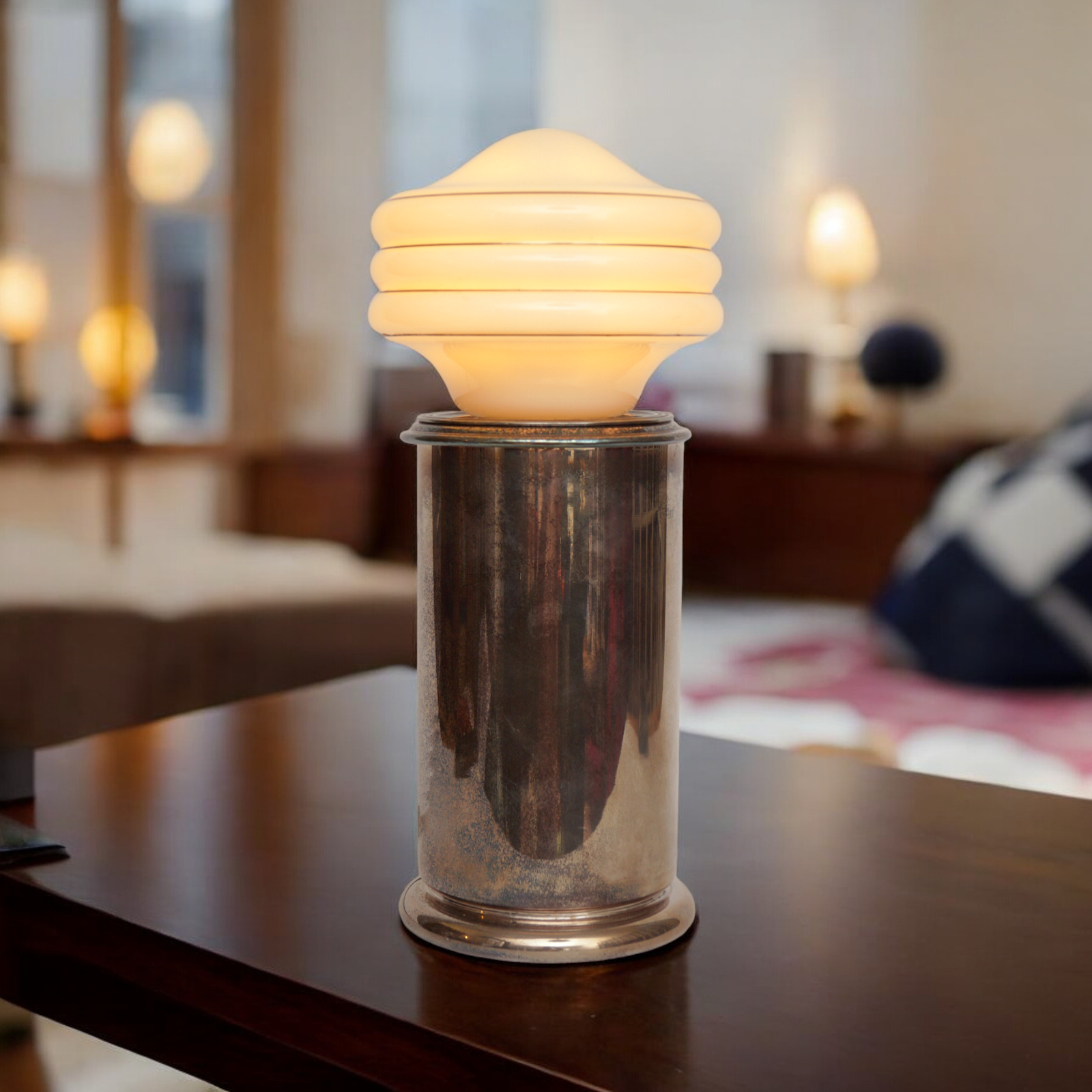 Spaceage Design Table Lamp "WILD DRUM CANON" Unique Table Light Opal Nickel