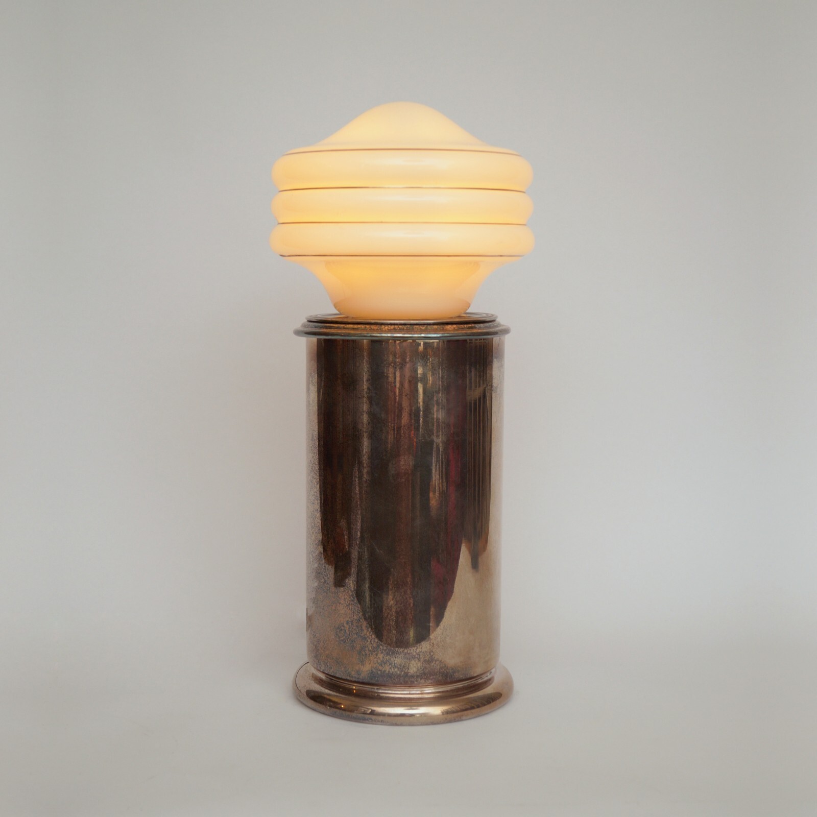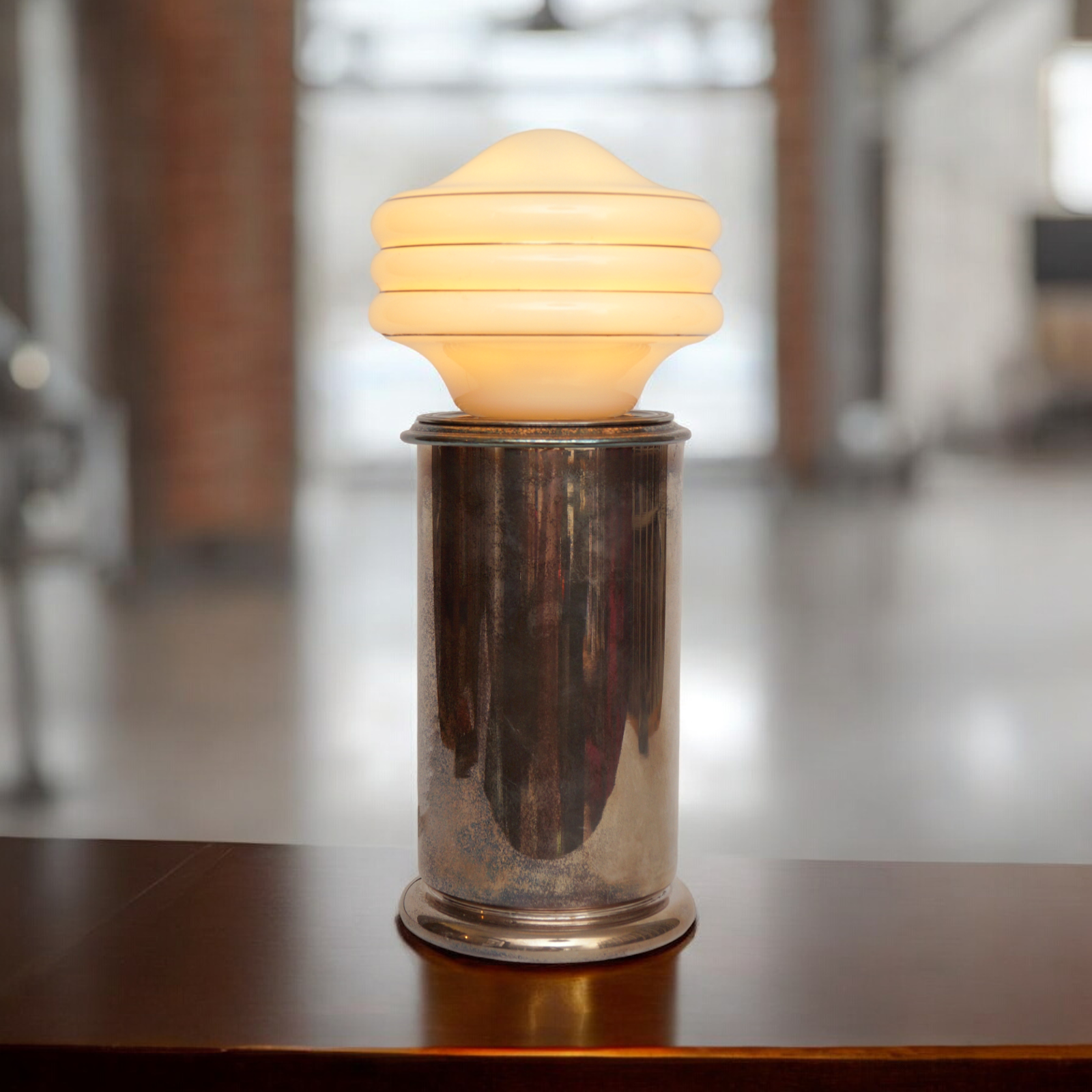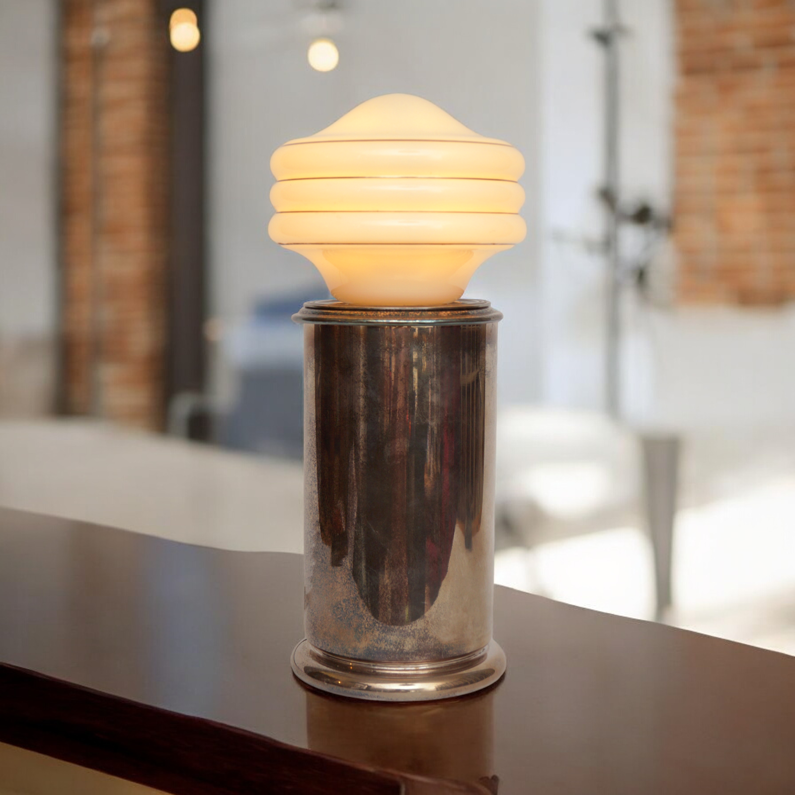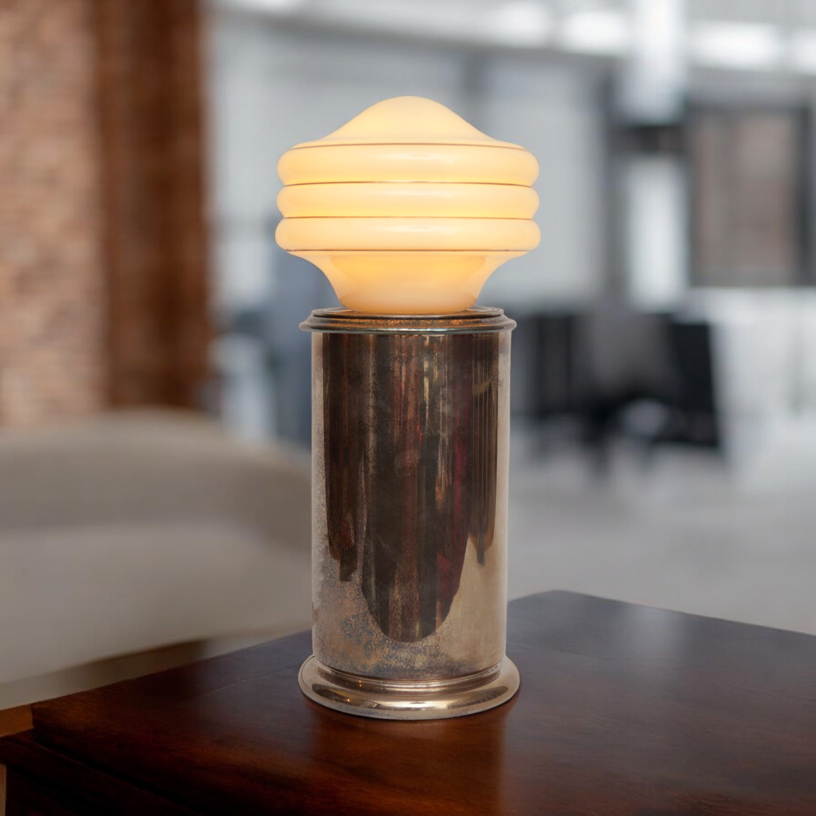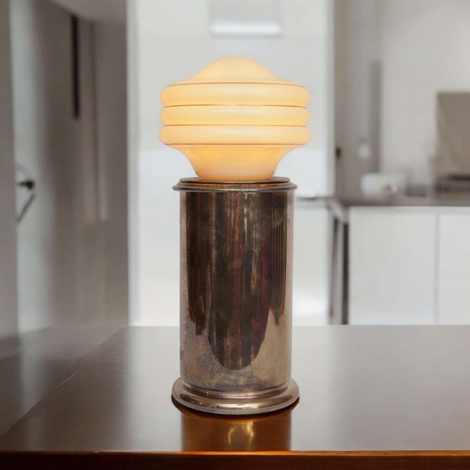 Spaceage Design Table Lamp "WILD DRUM CANON" Unique Table Light Opal Nickel
