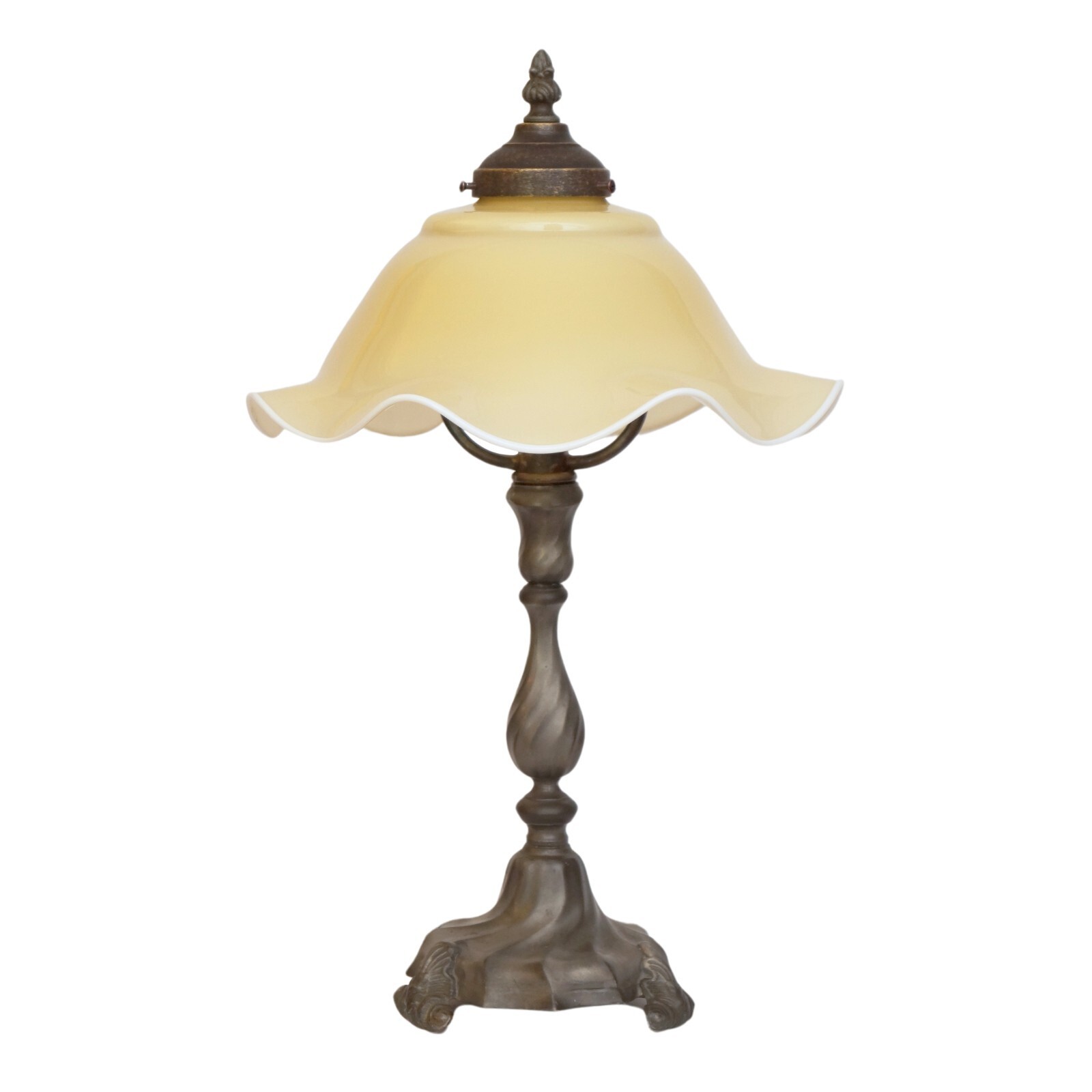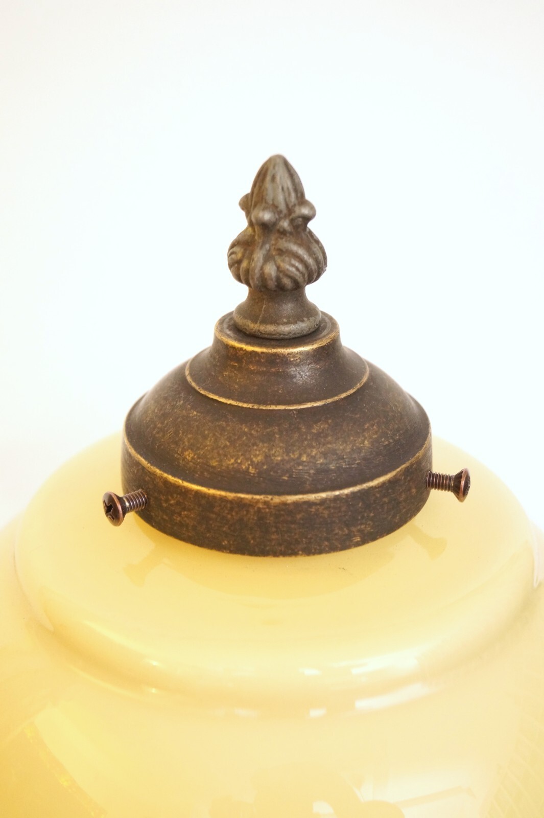 Original Art Nouveau opal glass, champagne colors, with a white edge and great lighting effect.
