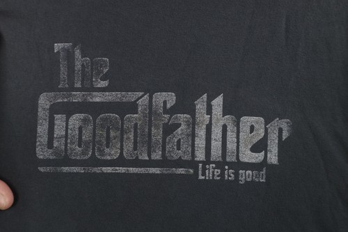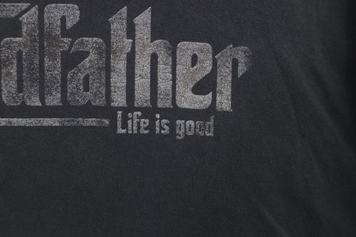 Life Is Good Mens XL Distressed Spell Out The Goodfather T-Shirt Gray Cotton