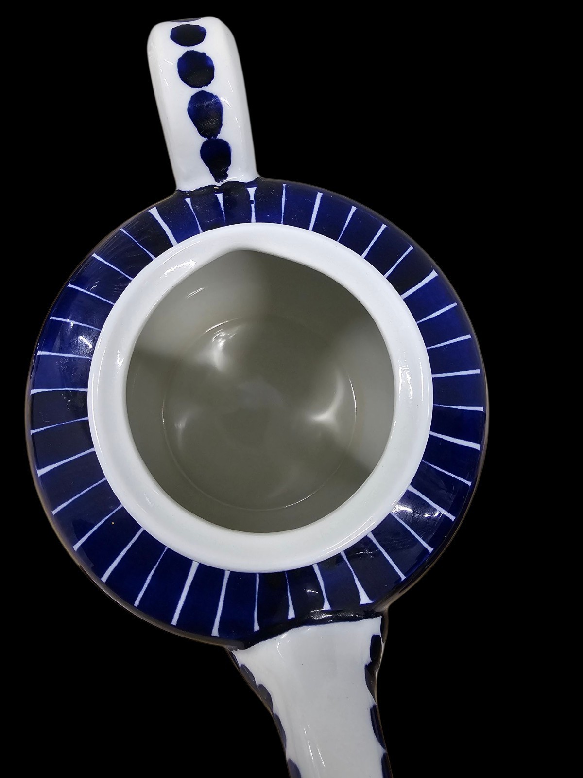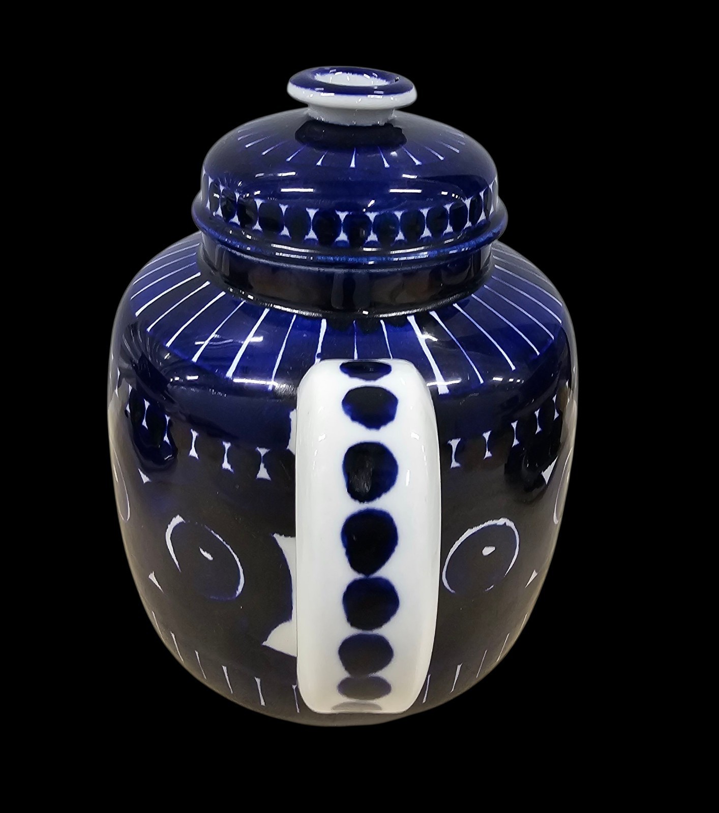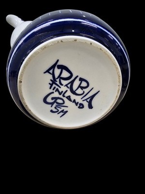 The Valencia pattern is Arabia?s longest-running hand-painted line ? each piece was individually decorated by skilled artisans using deep cobalt glaze over stoneware. No two are exactly alike. Designed in the 1960s and produced through the 1970s, these pieces are prized examples of Scandinavian modernism and timeless craftsmanship.