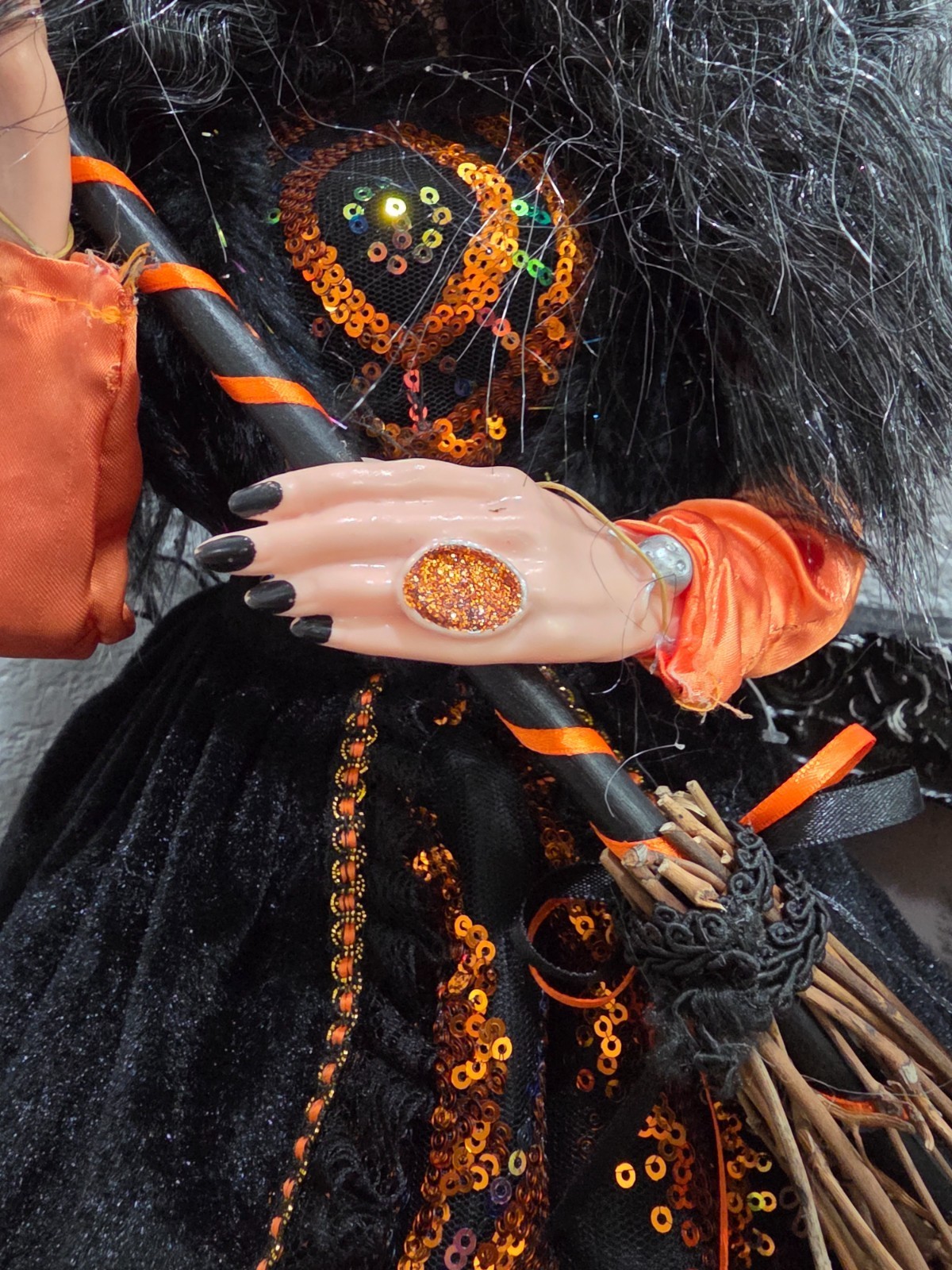 Halloween Orange Sequins Witch Holding Broom and similar items