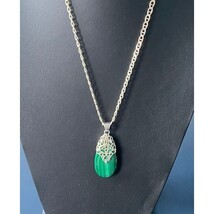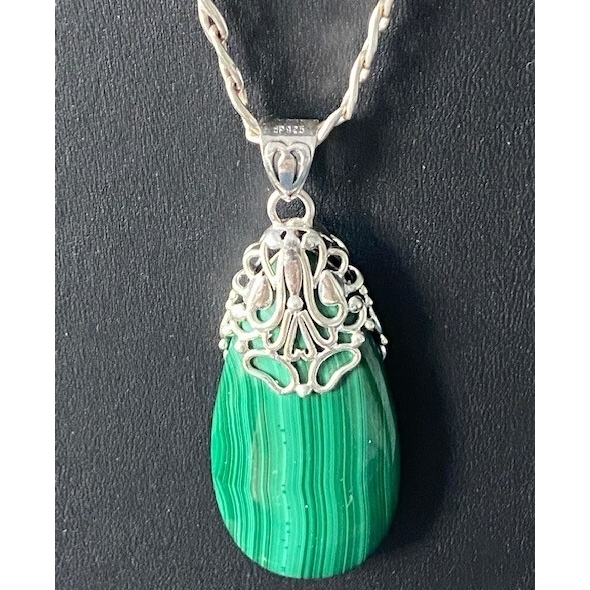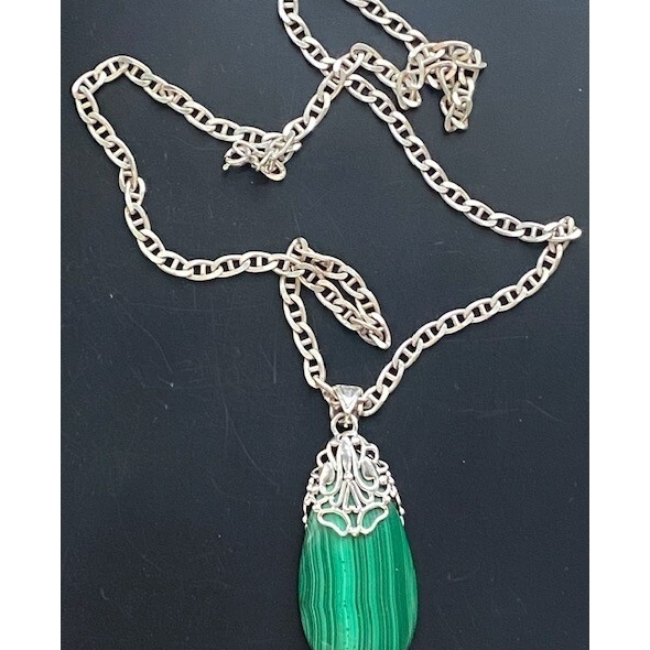 BEAUTIFUL LARGE 925 STERLING SILVER MALACHITE PENDANT NECKLACE SKY