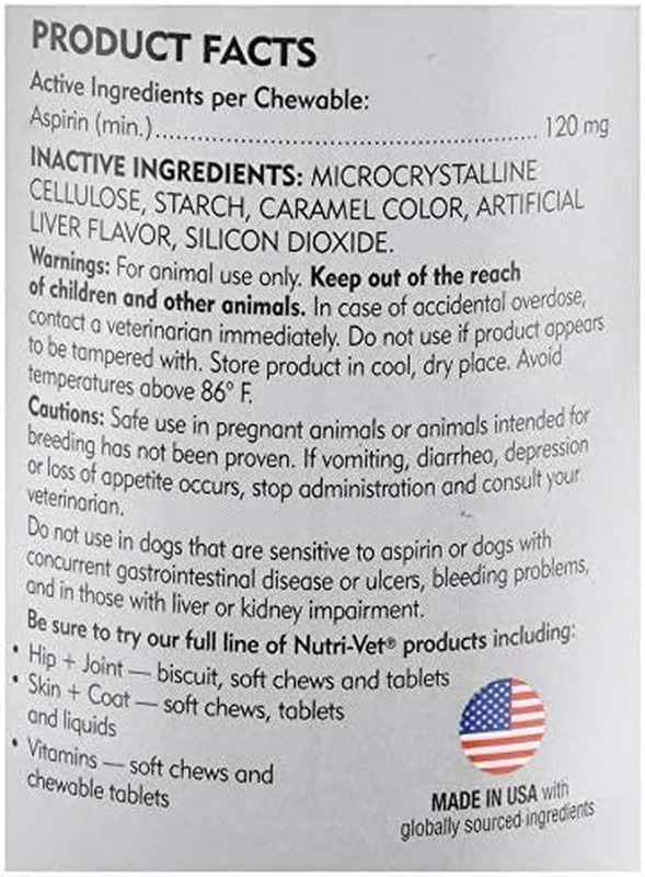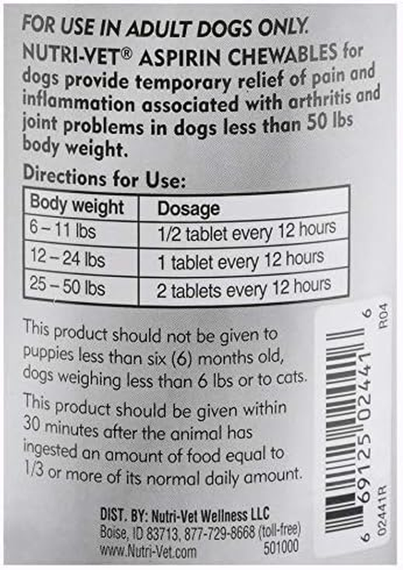 Aspirin liver flavor chewables provide temporary relief of pain and inflammation associated with arthritis and joint problems in dogs. The liver flavor makes it easy to give and less upsetting to stomach. This is an offering for multi quantity bundle - 2 count