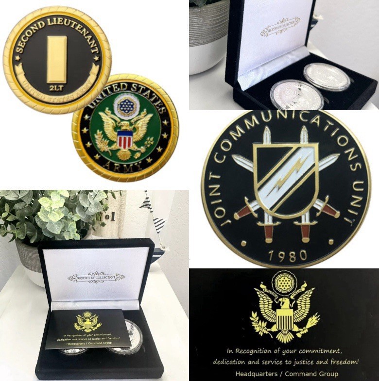 2pcs Army Rank 2LT 2nd O-2 And Joint Communications Unit Coin