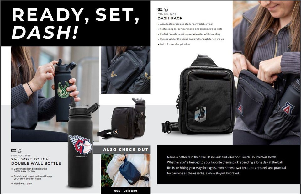Name a better duo than the Dash Pack and 24oz Soft Touch Double Wall Bottle! (Sold Separately)