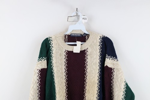 Deadstock Vintage 90s Streetwear Mens Large Striped Diamond Knit Sweater USA